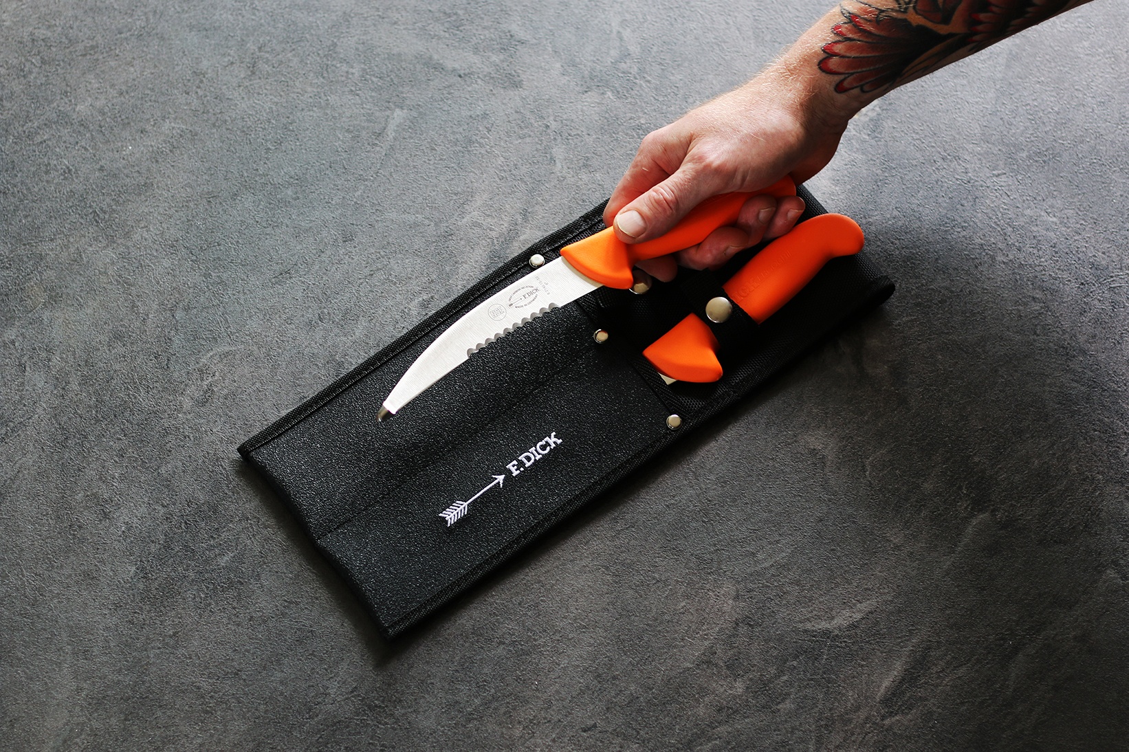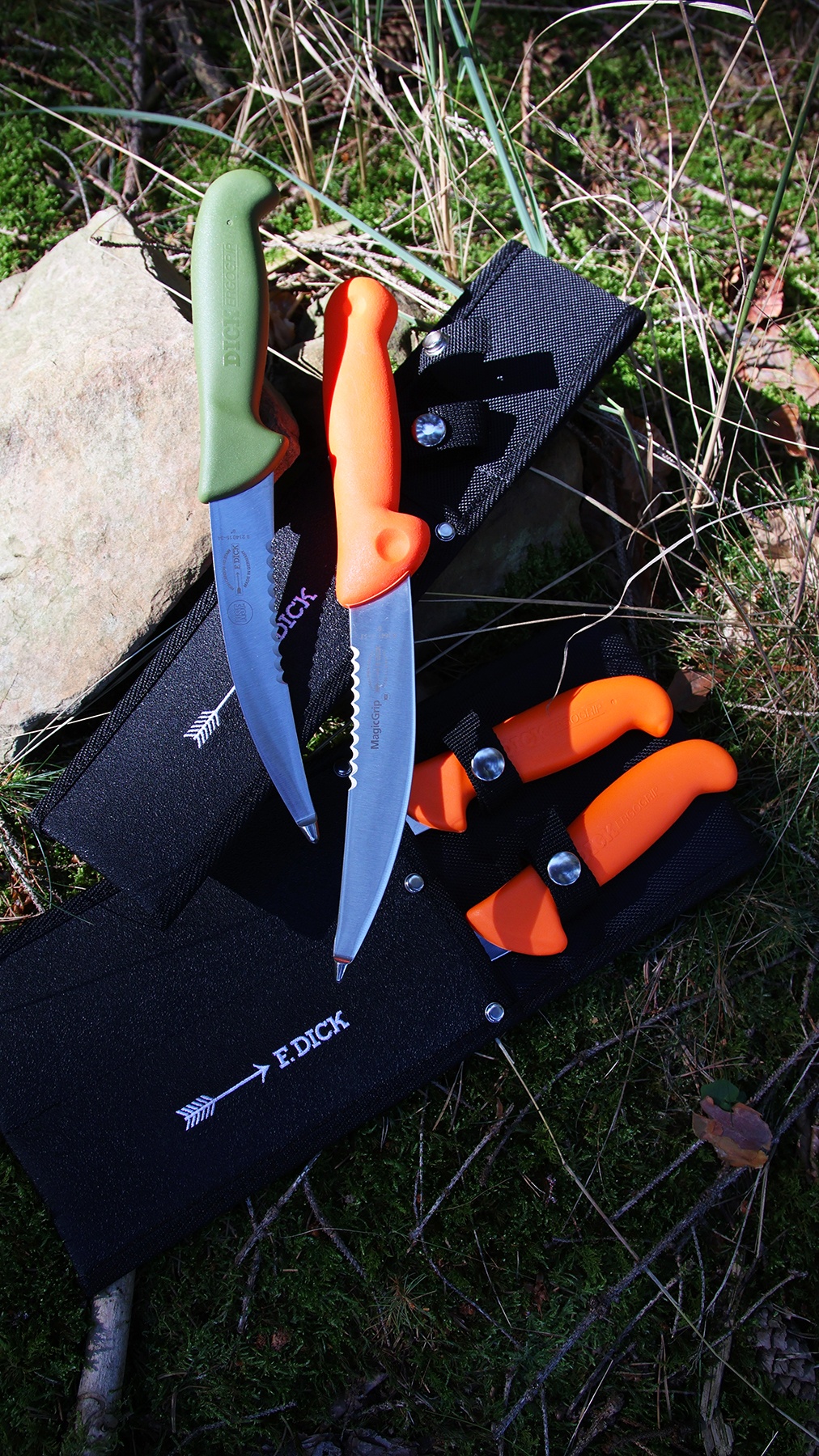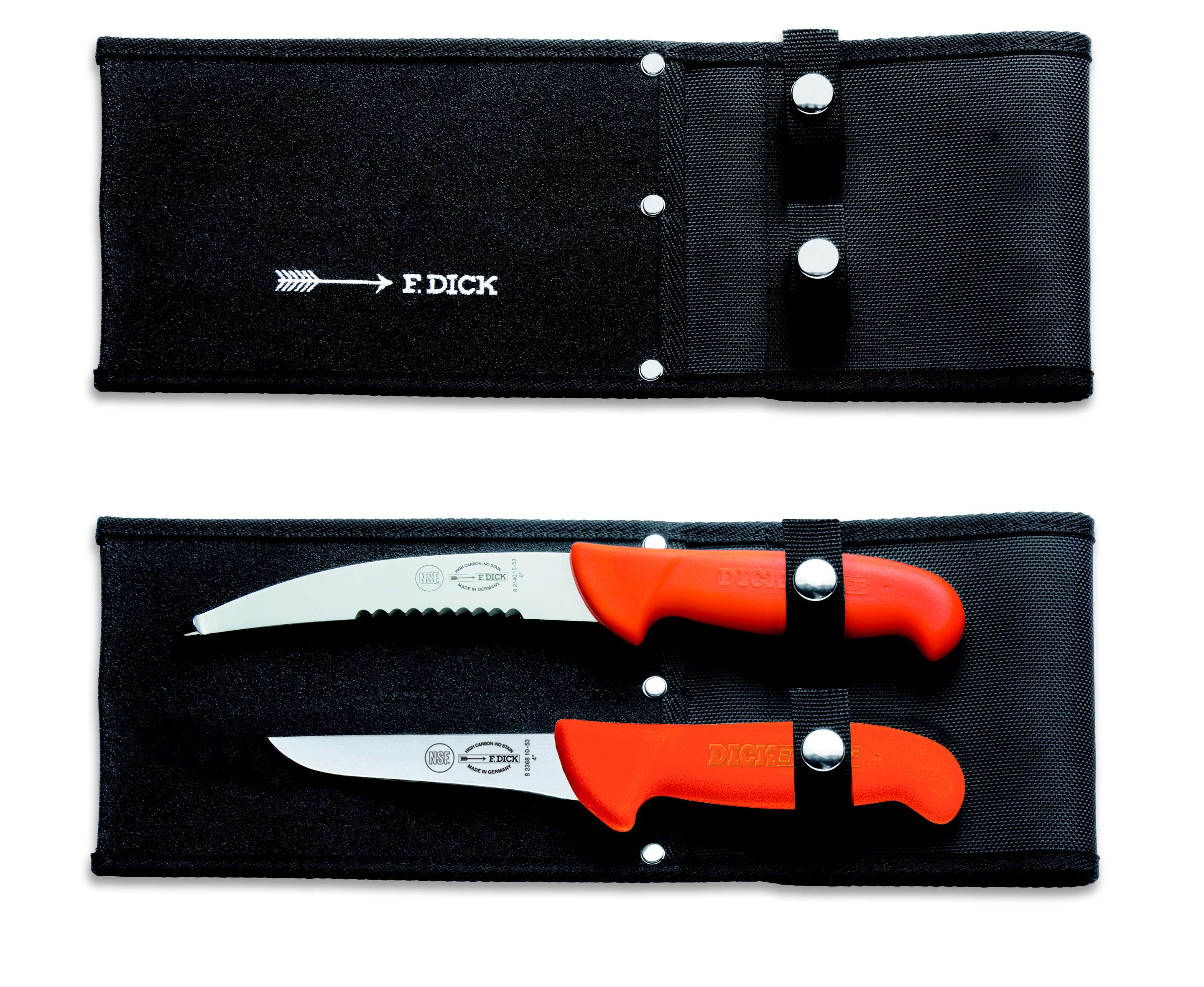 Set praktického pouzdra a dvou loveckých nožů s ergonomickou rukojetí.