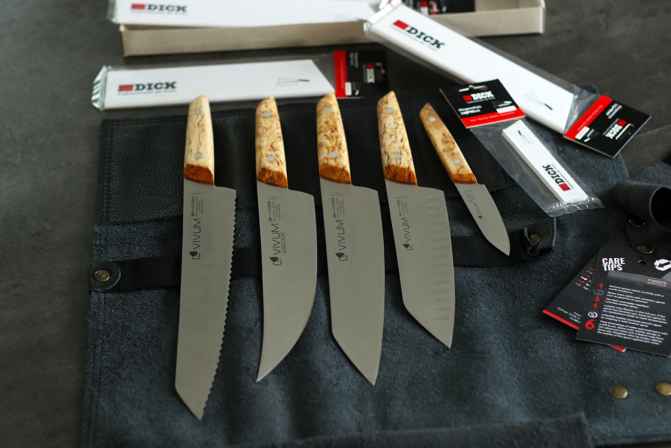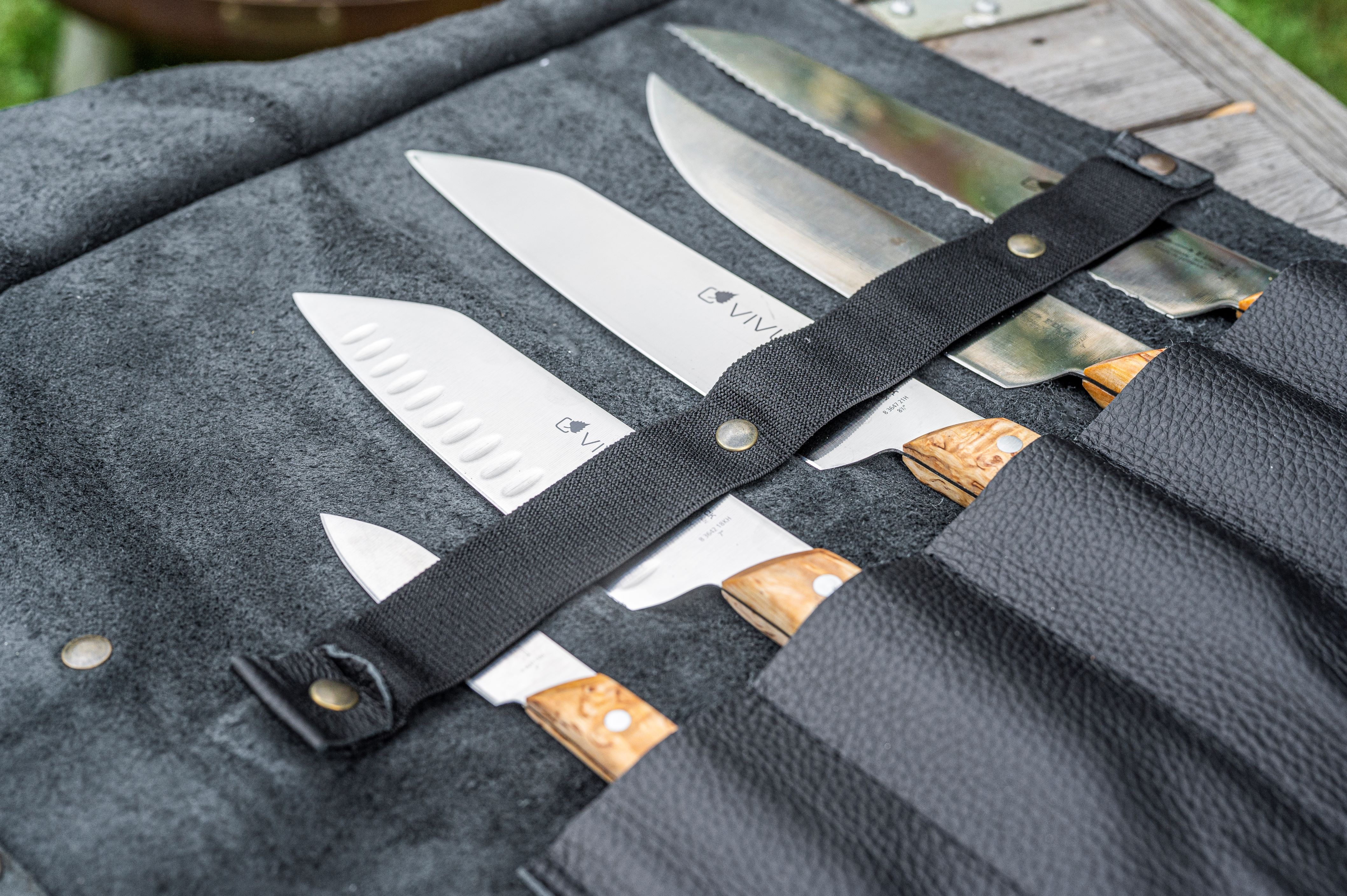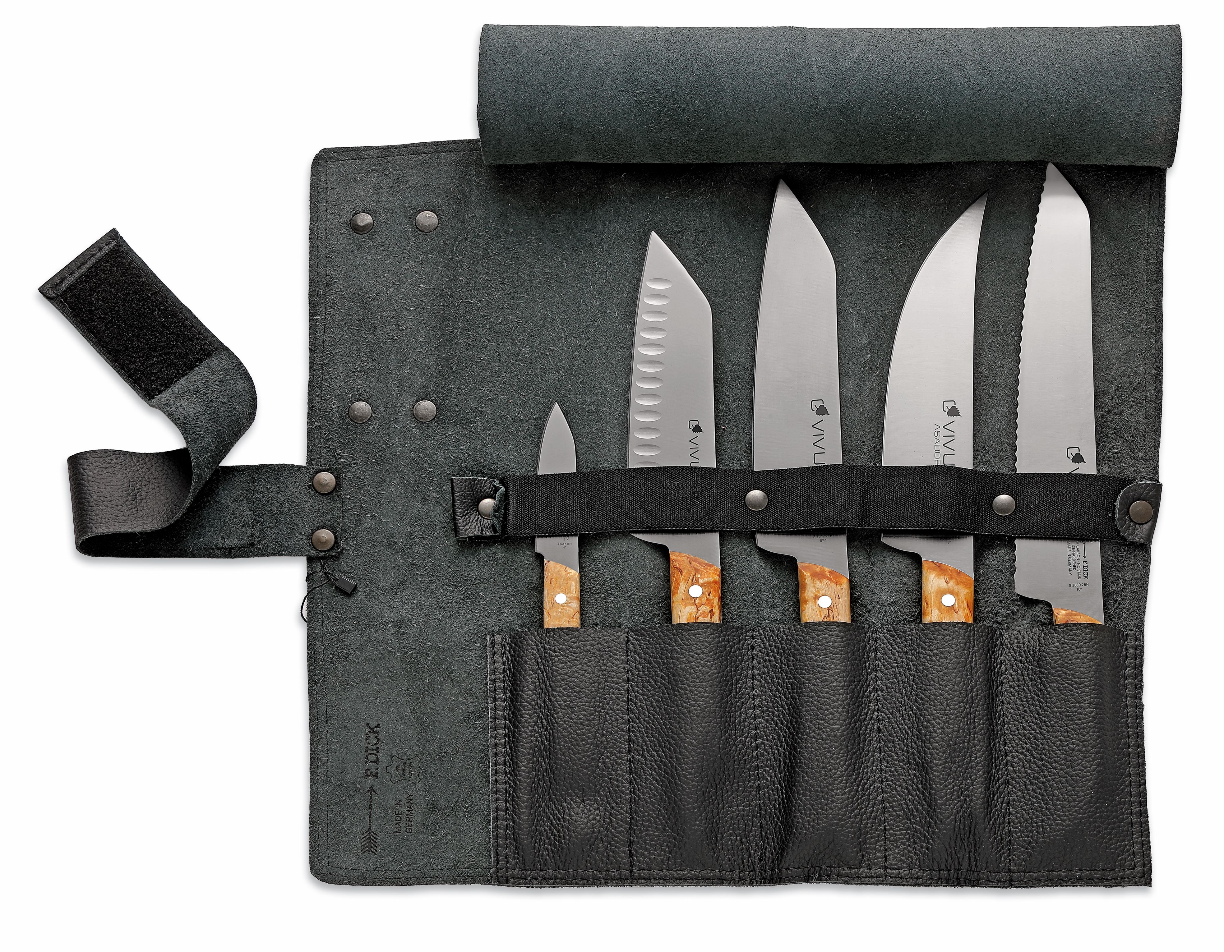 Černé rolovací pouzdro s noži ze série VIVUM obsahuje: