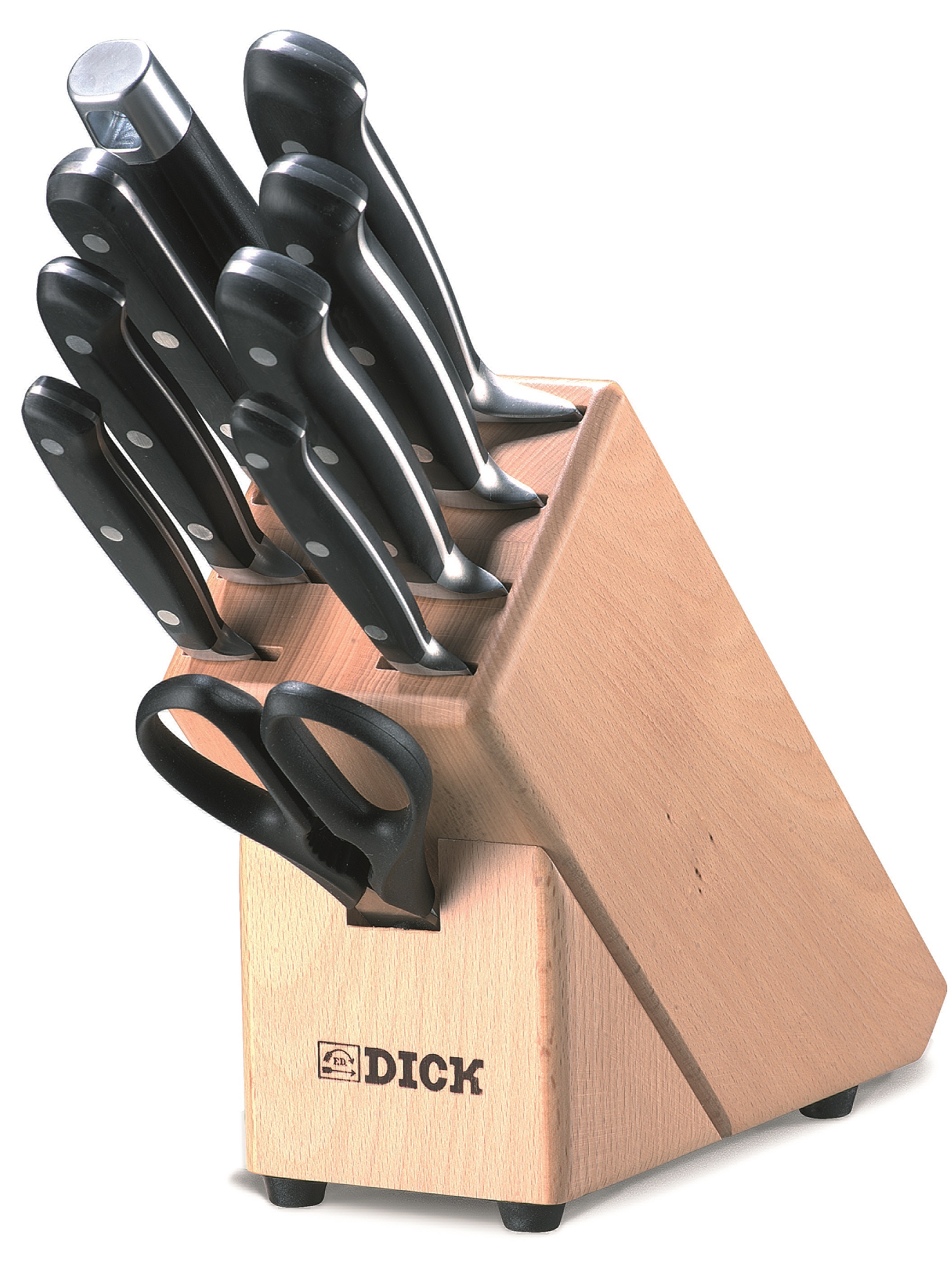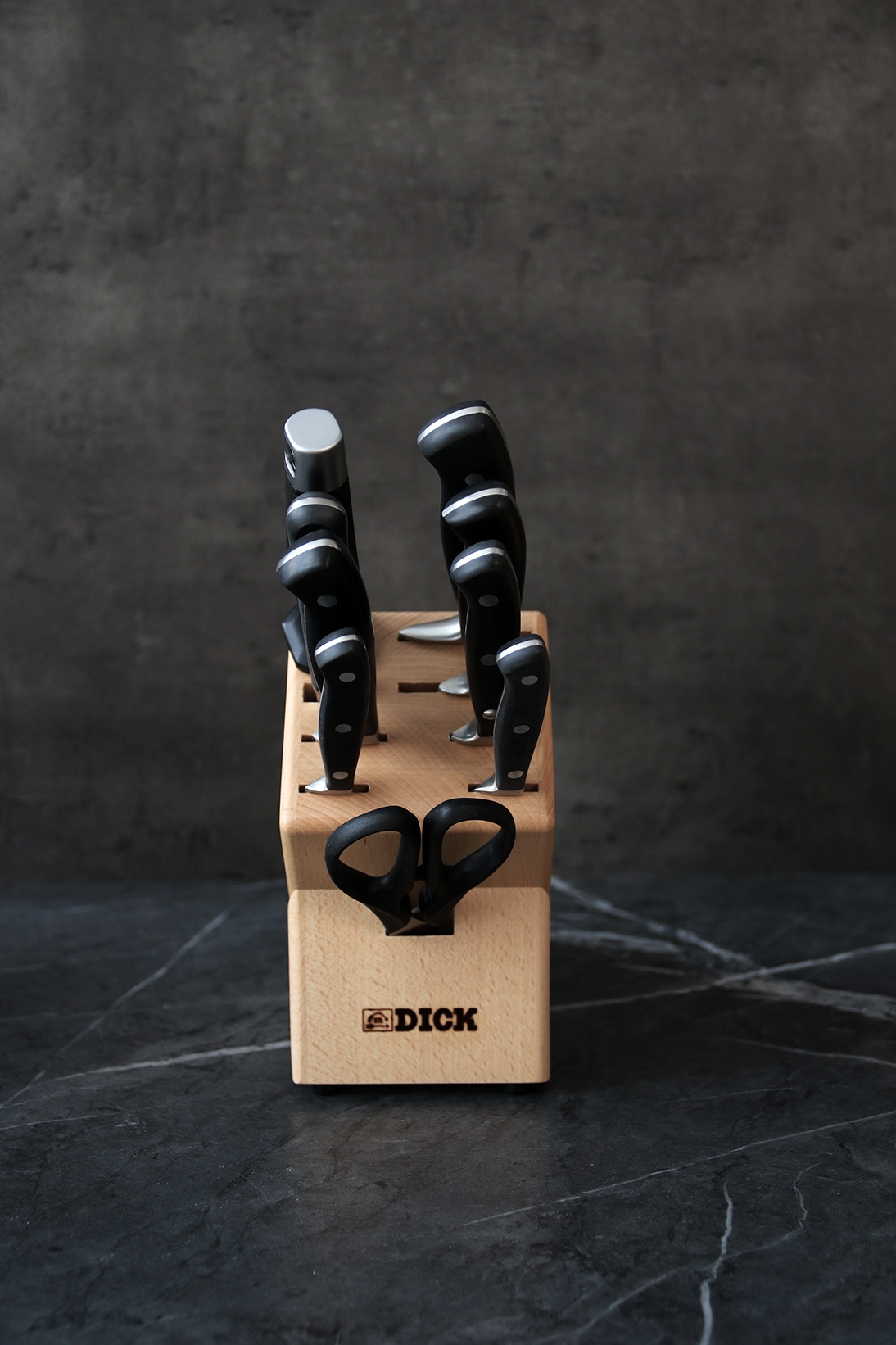 Dřevěný blok na nože s kovaným příslušenstvím ze série Premier Plus.