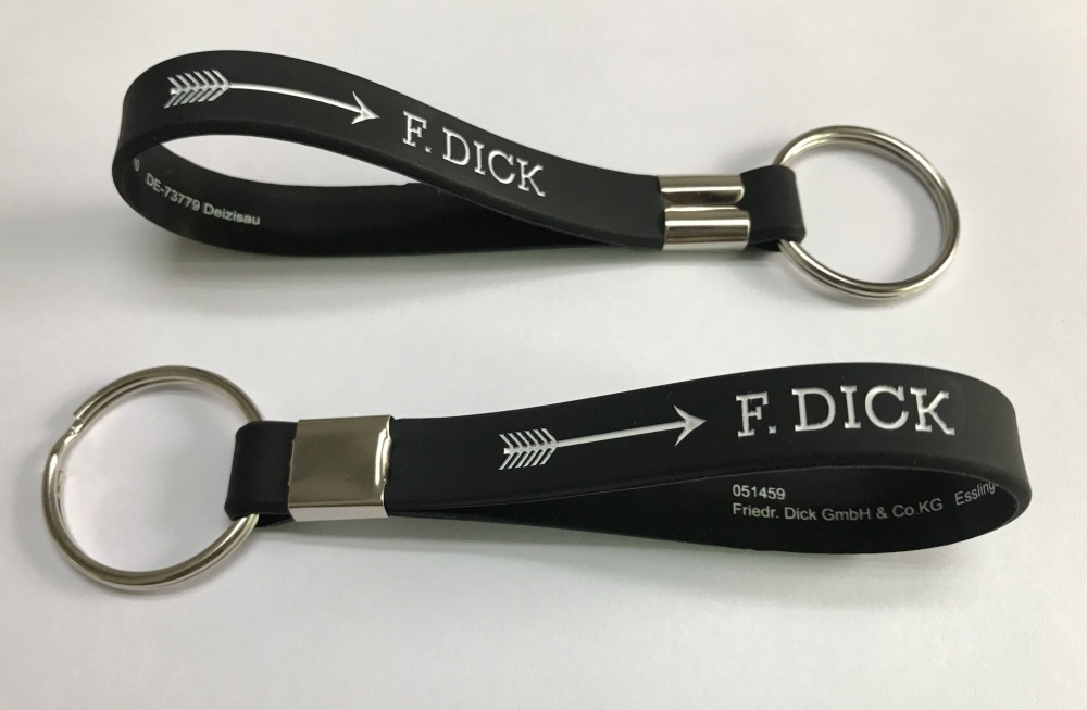 • Černá silikonová páska s bílým logem DICK a kovovým kroužkem.