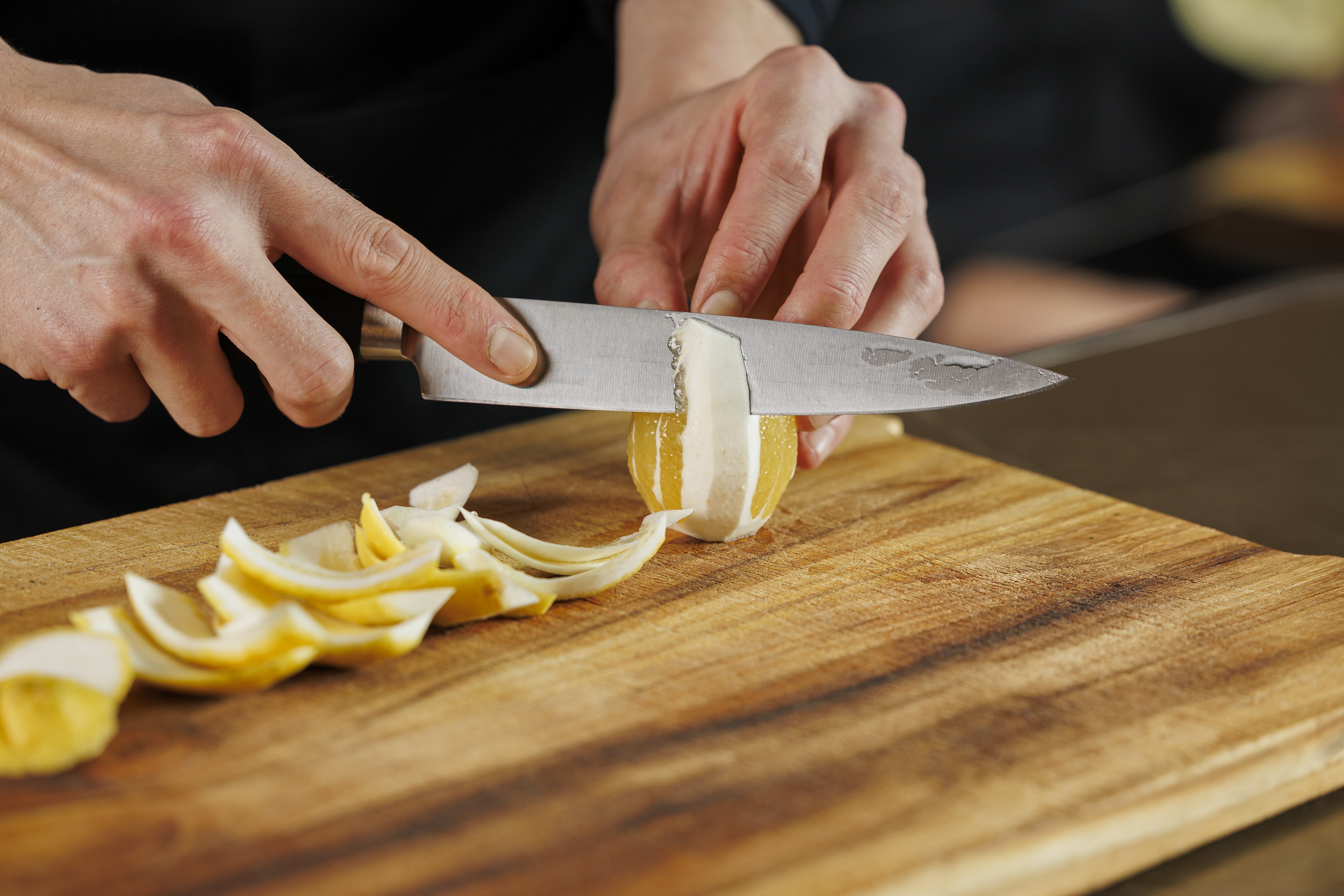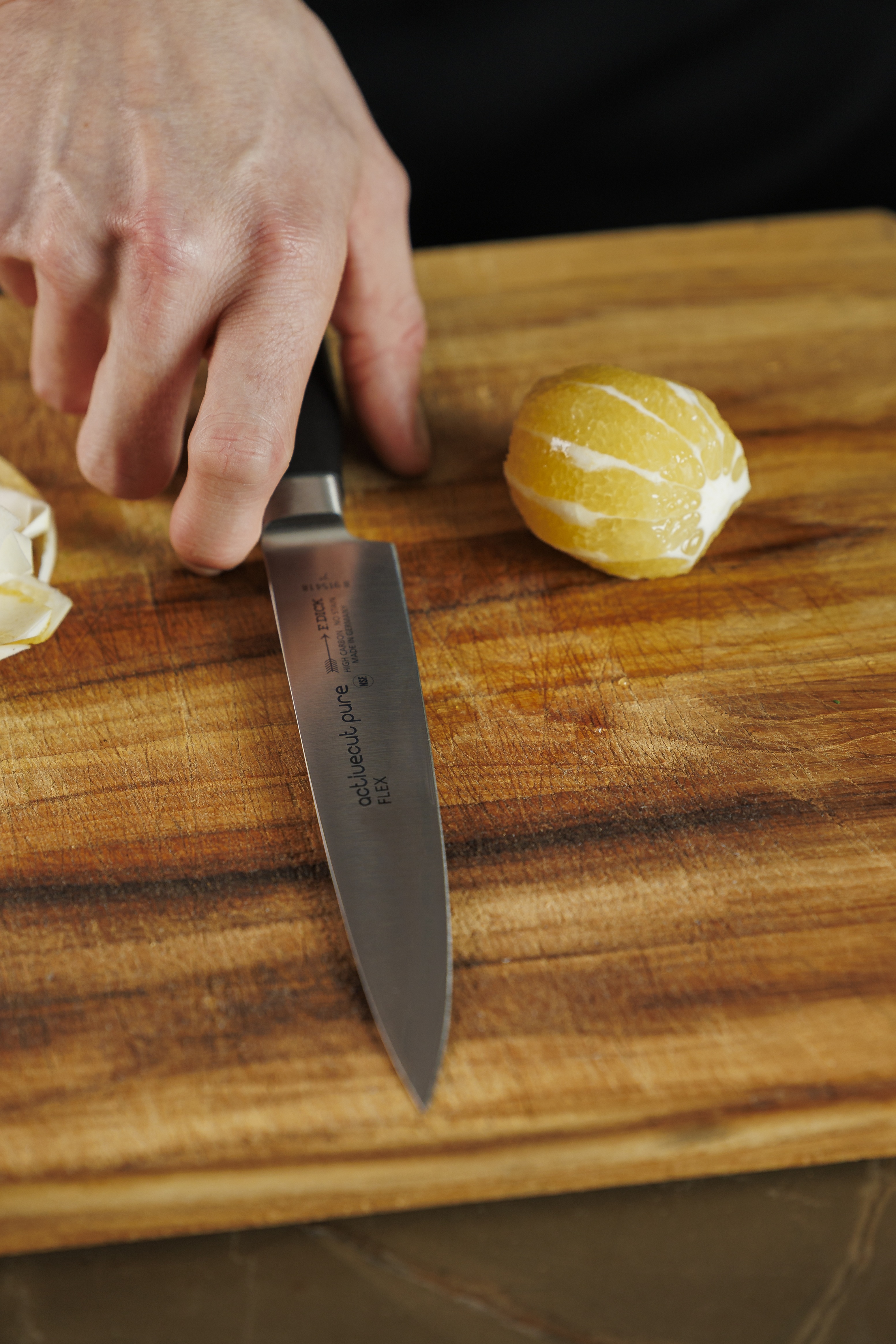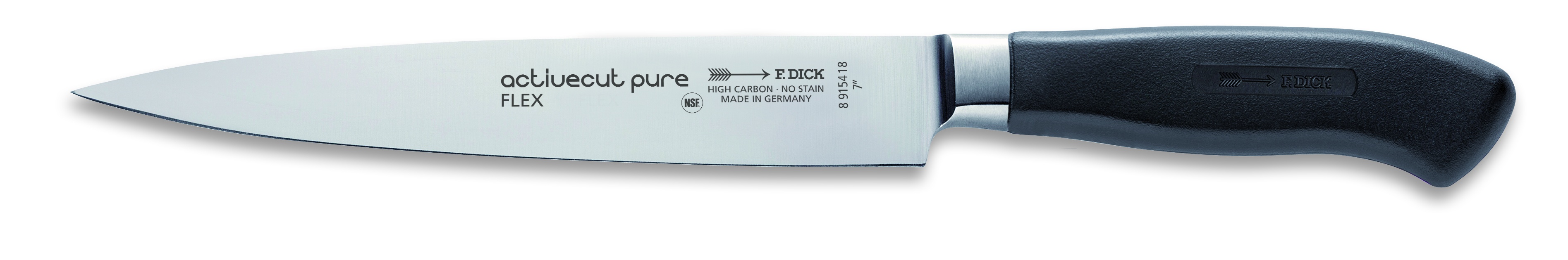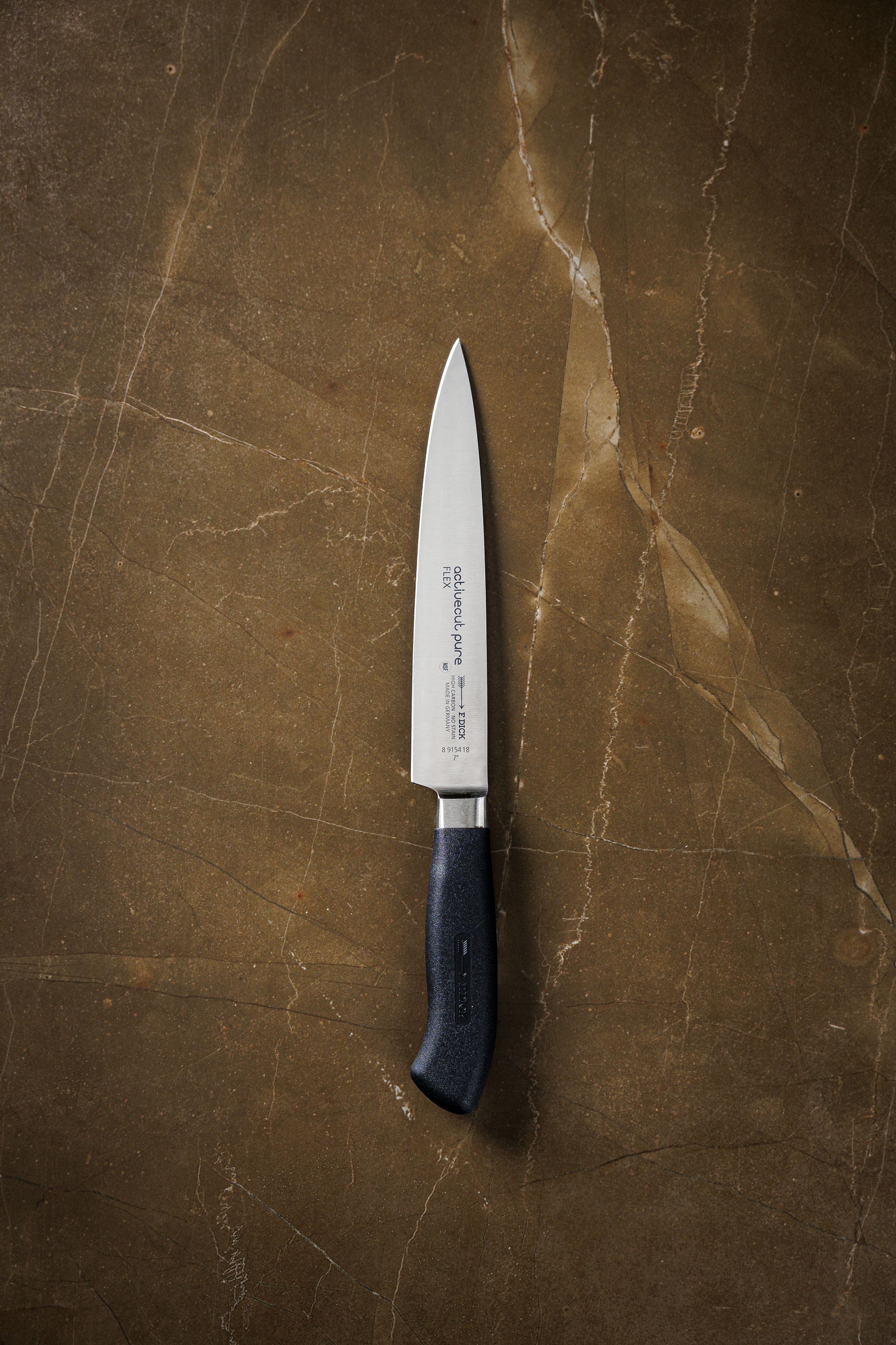 Čepele řady activecut pure jsou kované z vysoce kvalitní nerezové oceli. Ergonomicky tvarovaná celoplastová rukojeť, z protiskluzového materiálu odolného proti oděru, je bezespárově spojena s čepelí – pro dokonalou rovnováhu, příjemný pocit a maximální hygienu. Optimalizovaná tvrdost 56 HRC zajišťuje dlouhodobý řezný výkon a snadné ostření. Poloviční záštita umožňuje využití celé délky ostří a kompletní přebroušení čepele až po rukojeť.