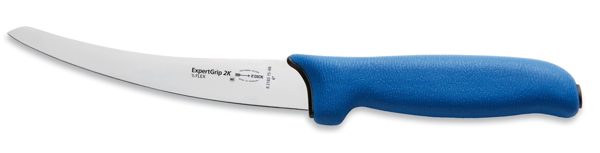 Série vykosťovacích nožů Dick ExpertGrip má rukojeť z protiskluzového měkkého materiálu, který sedí příjemně a pohodlně v ruce a nezpůsobuje otlačky. Tato speciální bezpečnostní protiskluzová rukojeť zabraňuje smeknutí nože za mokra, nebo při mastnotě - účinná též v rukavicích.