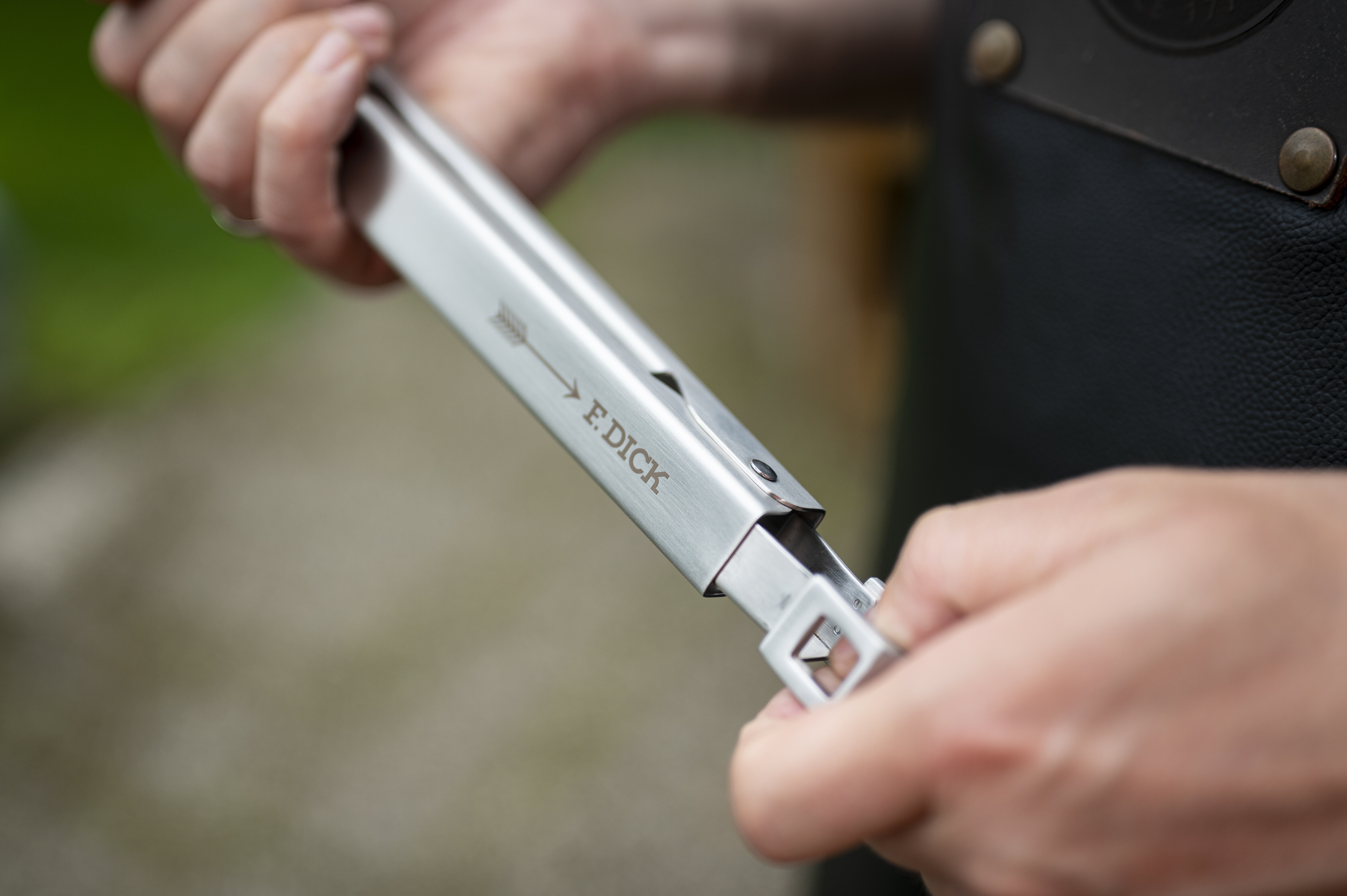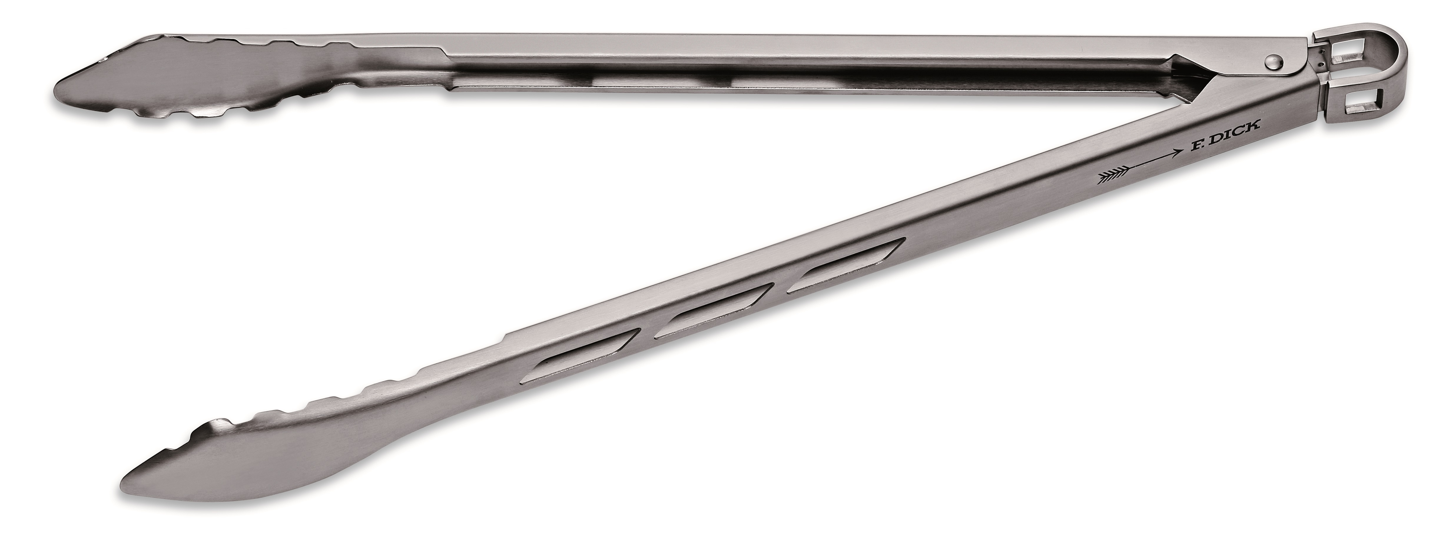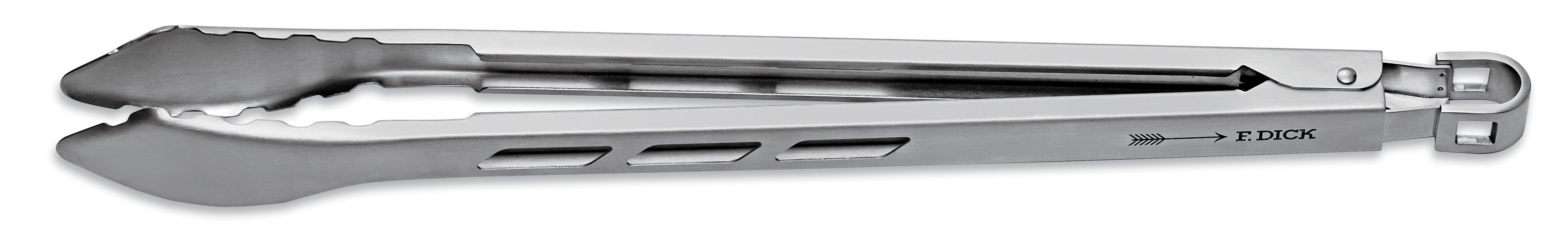 Tvar grilovacích kleští F. DICK je na konci mírně zašpičatělý, pro bezpečné nabírání malých kousků masa nebo zeleniny. Kleště se však dají i doširoka otevřít, aby udržely i velké grilované pokrmy.