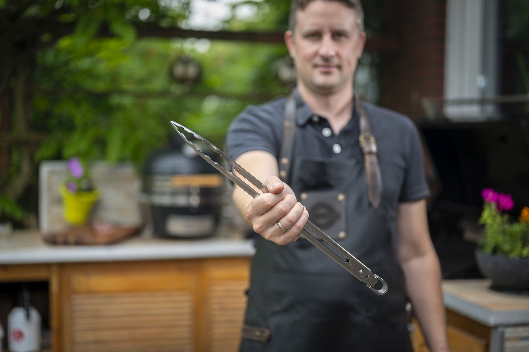 Kleště mají vyváženou celkovou délku 40 cm (15 ½”), díky které můžete stát dále od grilu, což snižuje riziko popálení, a přitom zůstat dostatečně blízko pro přesnou a pohodlnou manipulaci.