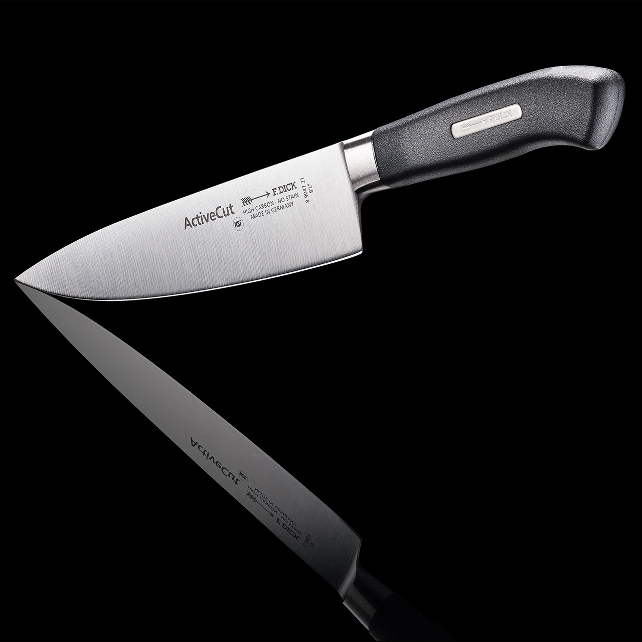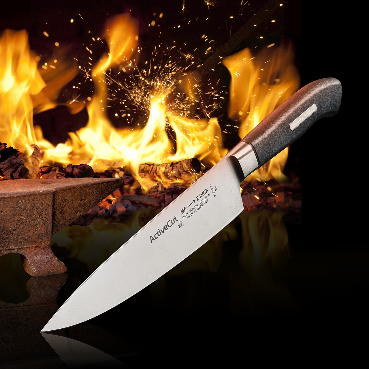 Kované nože klasických tvarů ze série ActiveCut mají rukojeť z vysoce odolného plastu, která je s čepelí nože spojena bezespárově. Nože jsou dokonale vyváženy a pohodlně sedí v ruce. Poloviční patka umožňuje broušení po celé délce ostří.