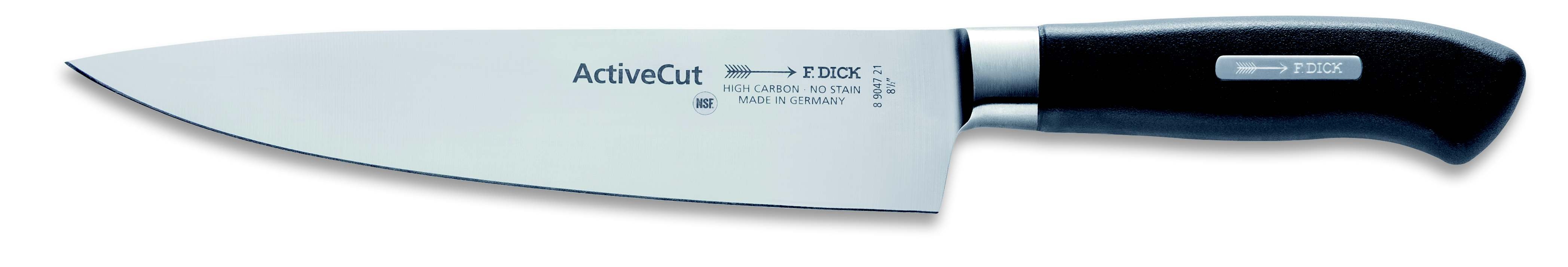 Kuchařský kovaný nůž ze série Active Cut v délce 26 cm. Tento nůž s širokou čepelí je nazýván nožem šéfkuchaře.