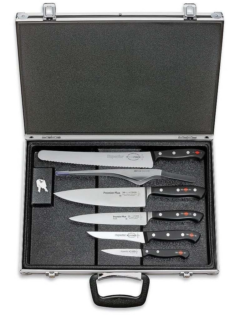 Kuchařský magnetický kufr je 6 místný a obsahuje kombinaci kovaného příslušenství ze série Premier Plus a lisovaného ze série Superior.