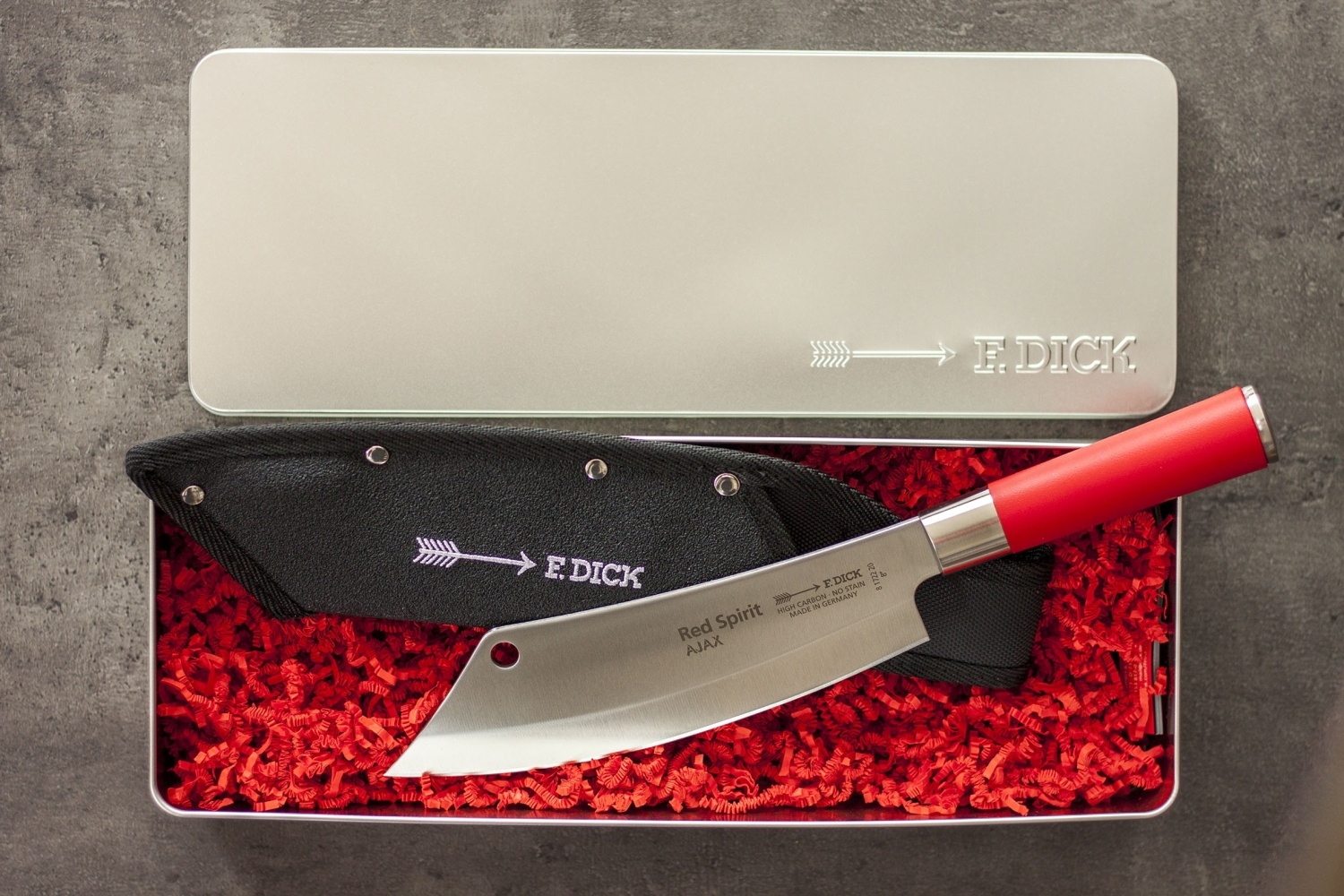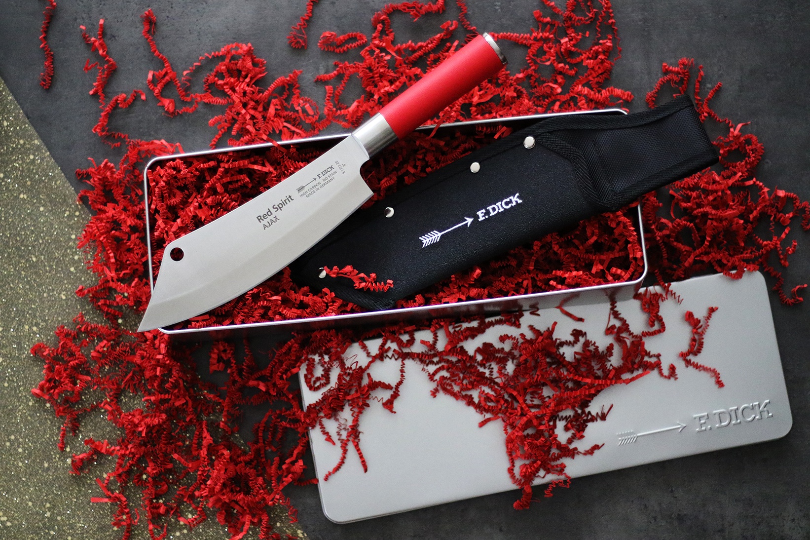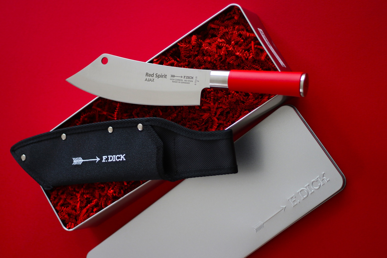 Kuchařský nůž AJAX ze série Red Spirit + pouzdro a dárková krabička.
