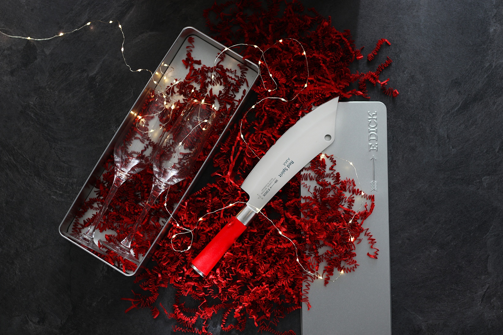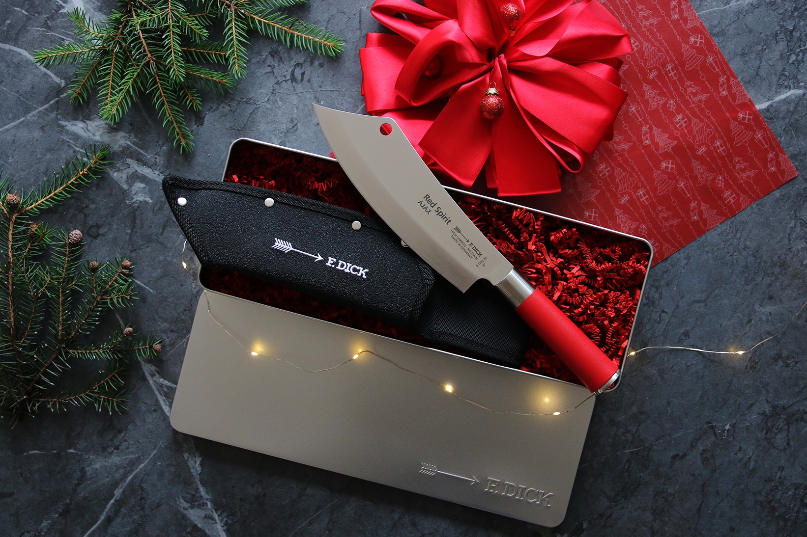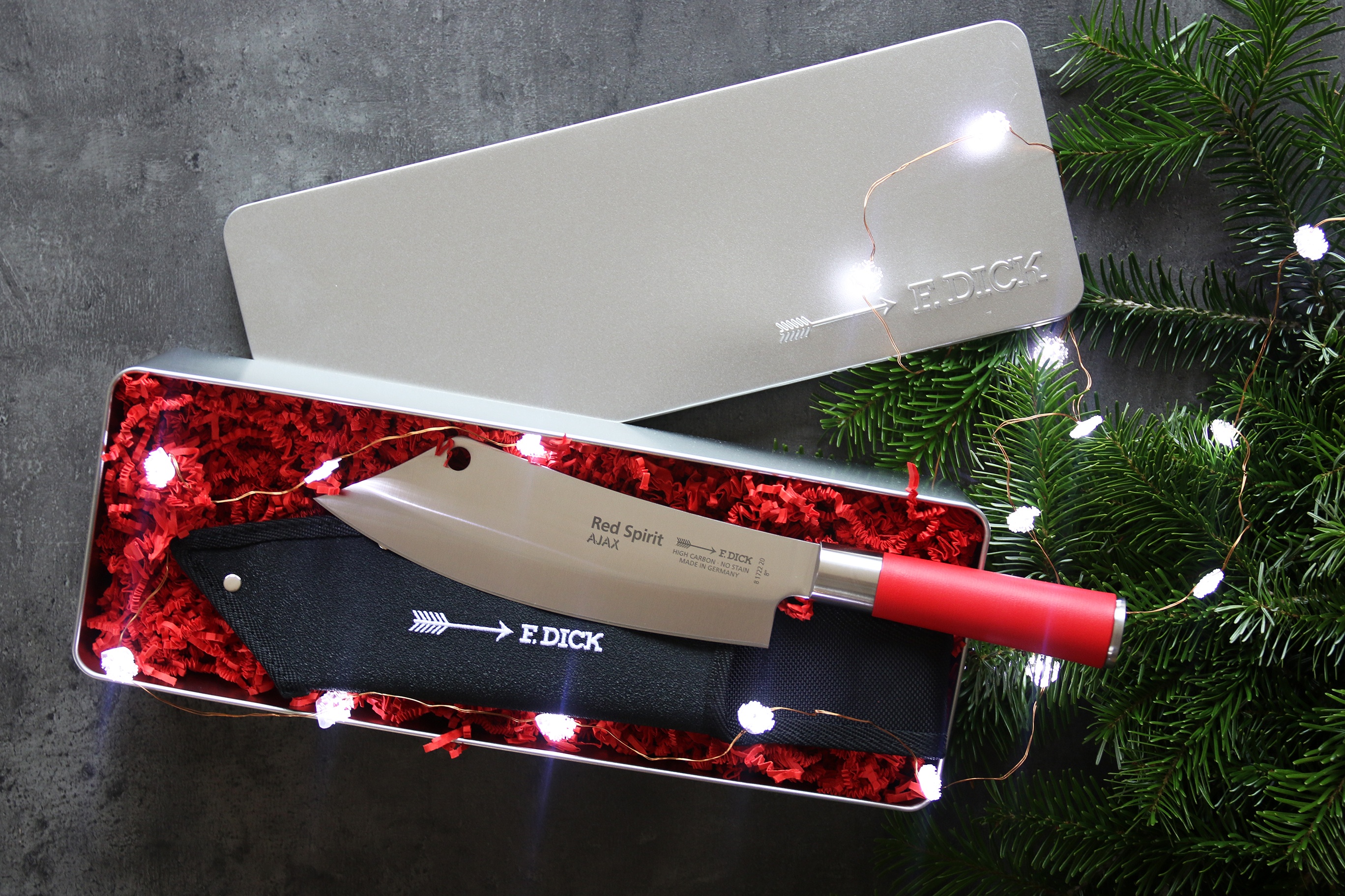 Kuchařský nůž AJAX ze série Red Spirit + pouzdro a dárková krabička.