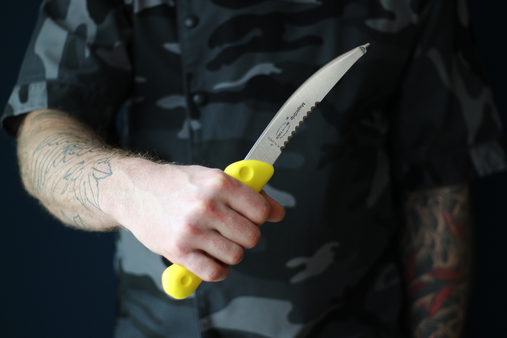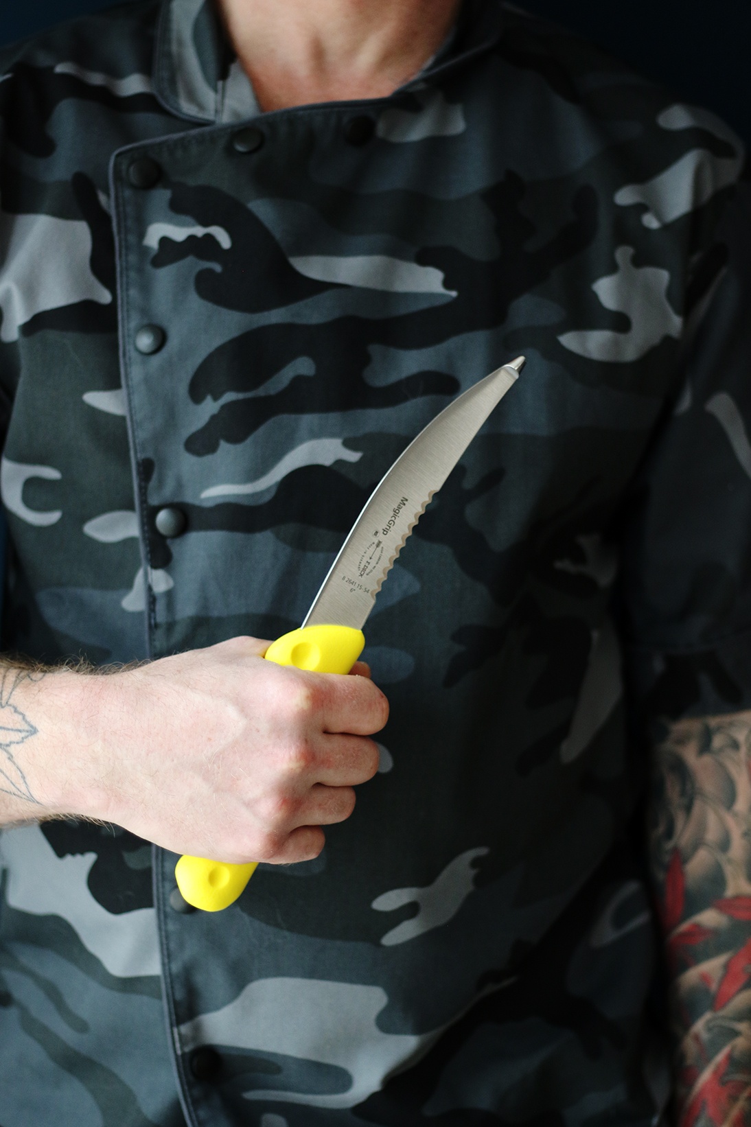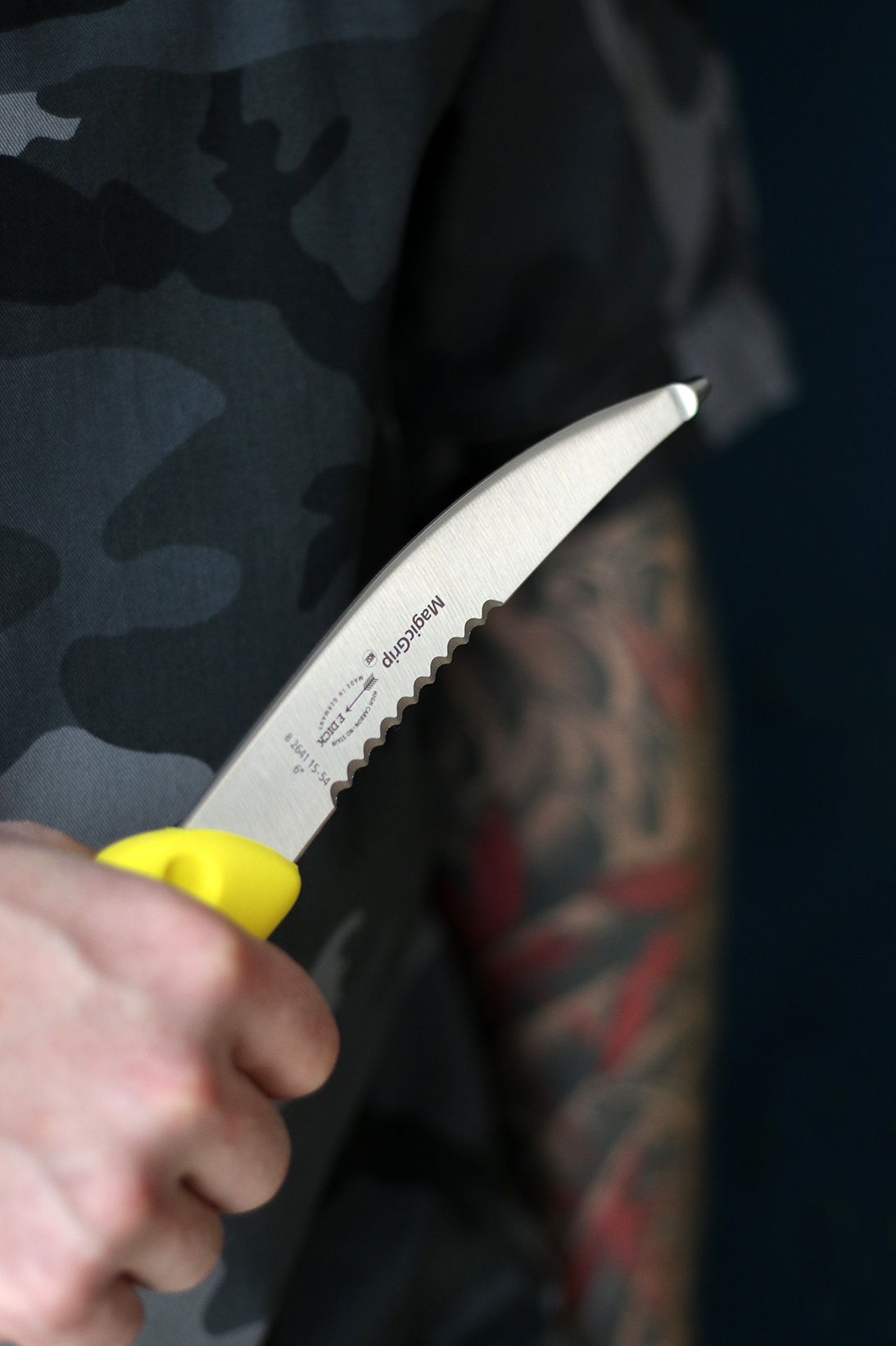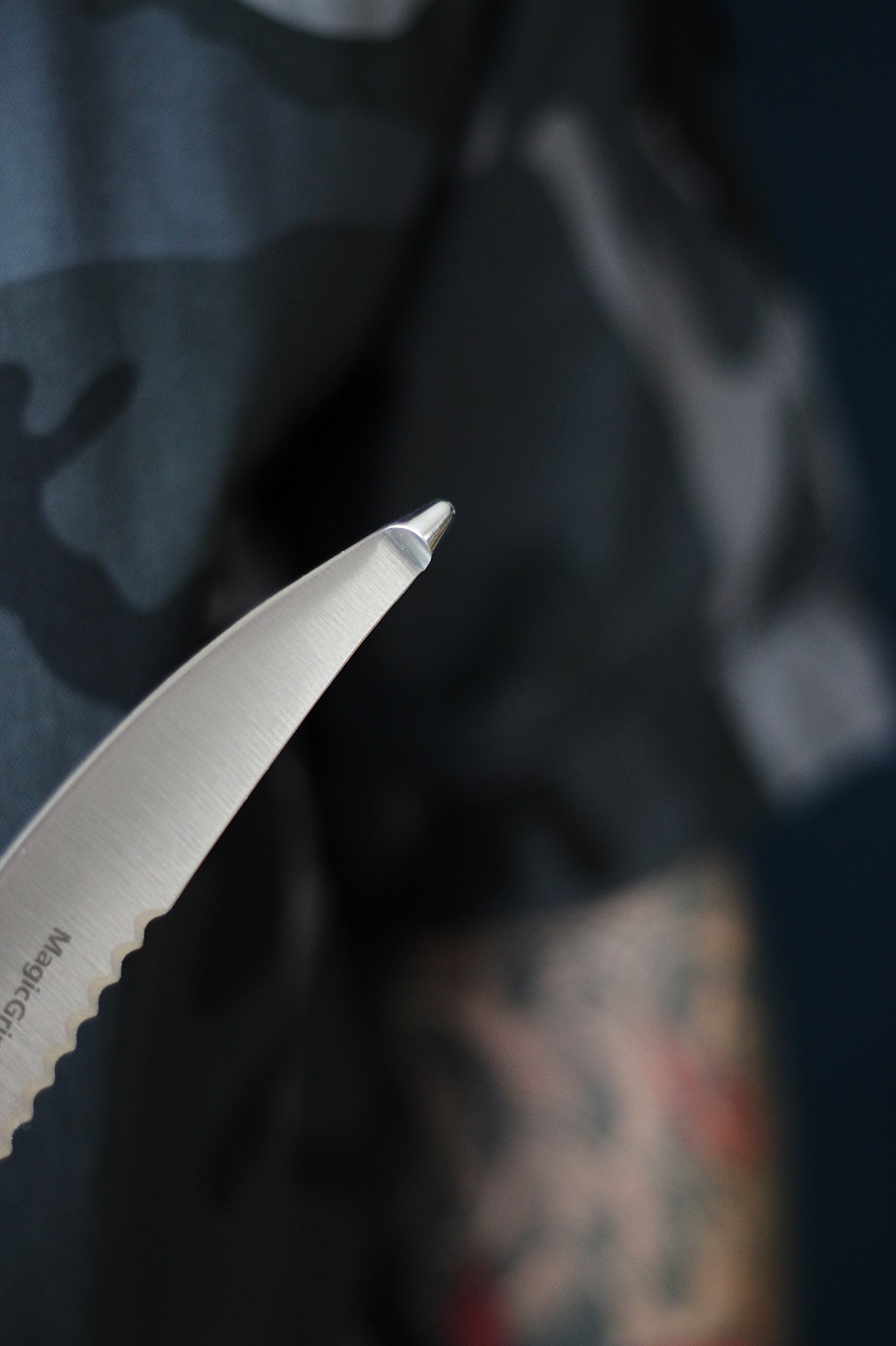 • Nůž má zahnutou čepel s kuličkou na konci = slouží k zamezení porušení vnitřních orgánů při porcování zvířete.