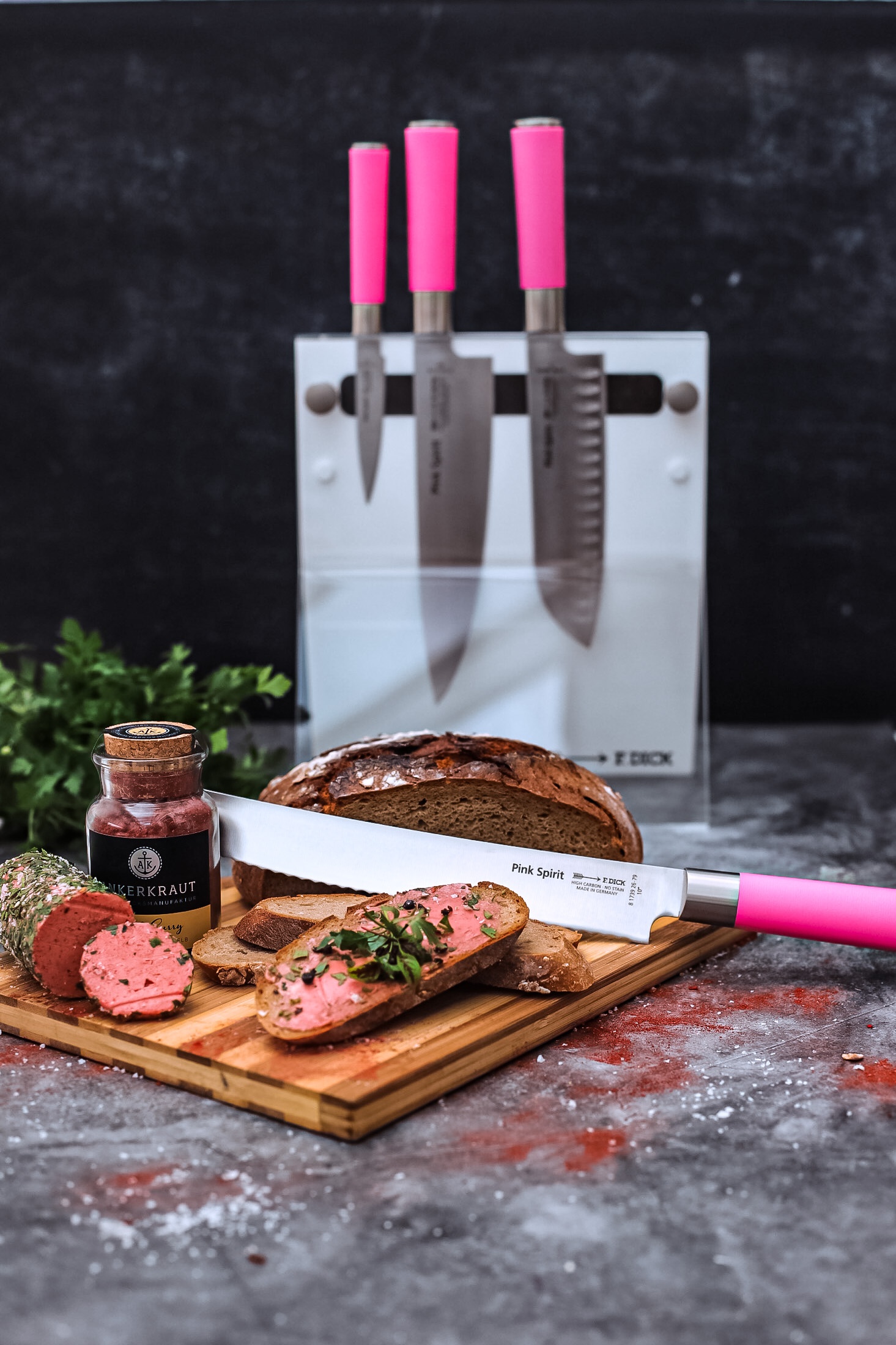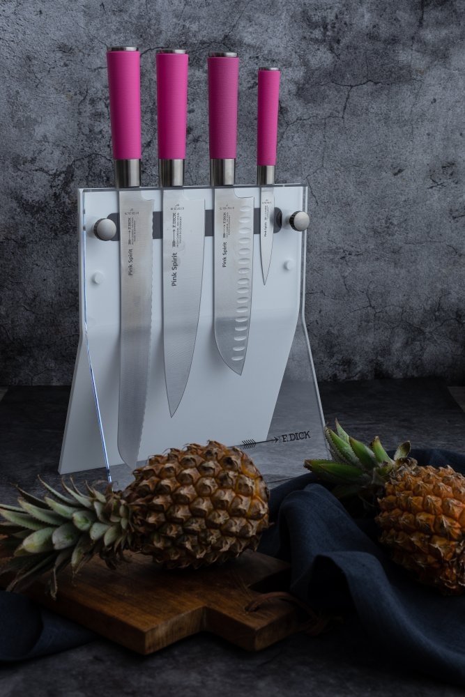 Limitovaná série Pink Spirit rozzáří vaši pracovní plochu! Dokonale ostré nože v růžovém provedení. Čepel každého kusu je velmi tence zabroušená a zaleštěná, aby byl řez maximálně přesný. Snadno s nimi ukrojíte pečivo, tvrdé zeleninové a ovocné slupky nebo pořádný steak. Série vychází z populární řady Red Spirit, která je též inspirovaná asijským typem nožů = typická kulatá rukojeť skvěle padne do ruky. Pink Spirit jsou určeny všem gastro nadšencům, hodí se do domácnosti nebo jako dárek.