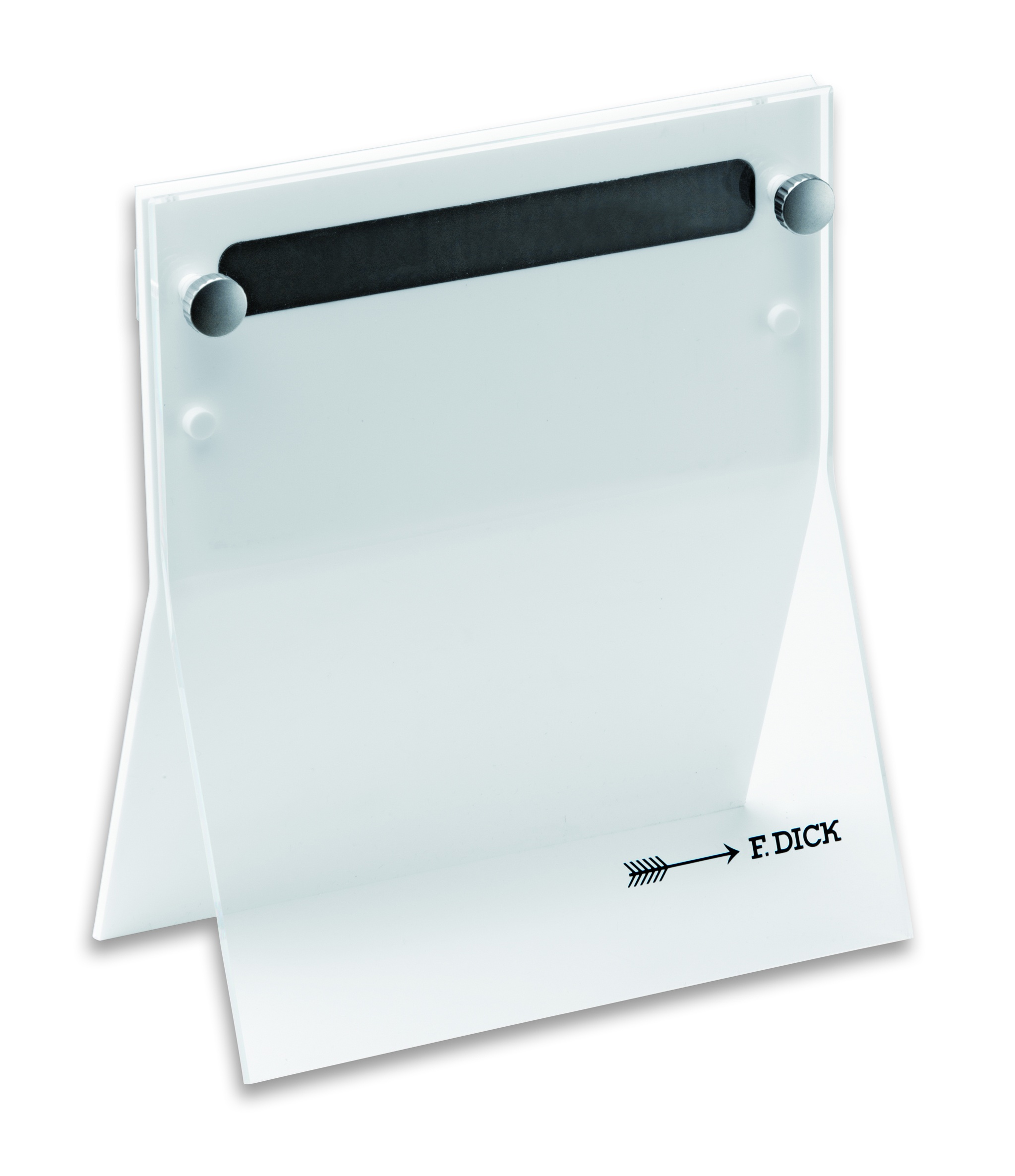 Magnetický stojan na nože s průhlednou stranou, díky které je máte neustále na očích a zároveň jsou bezpečně uloženy.