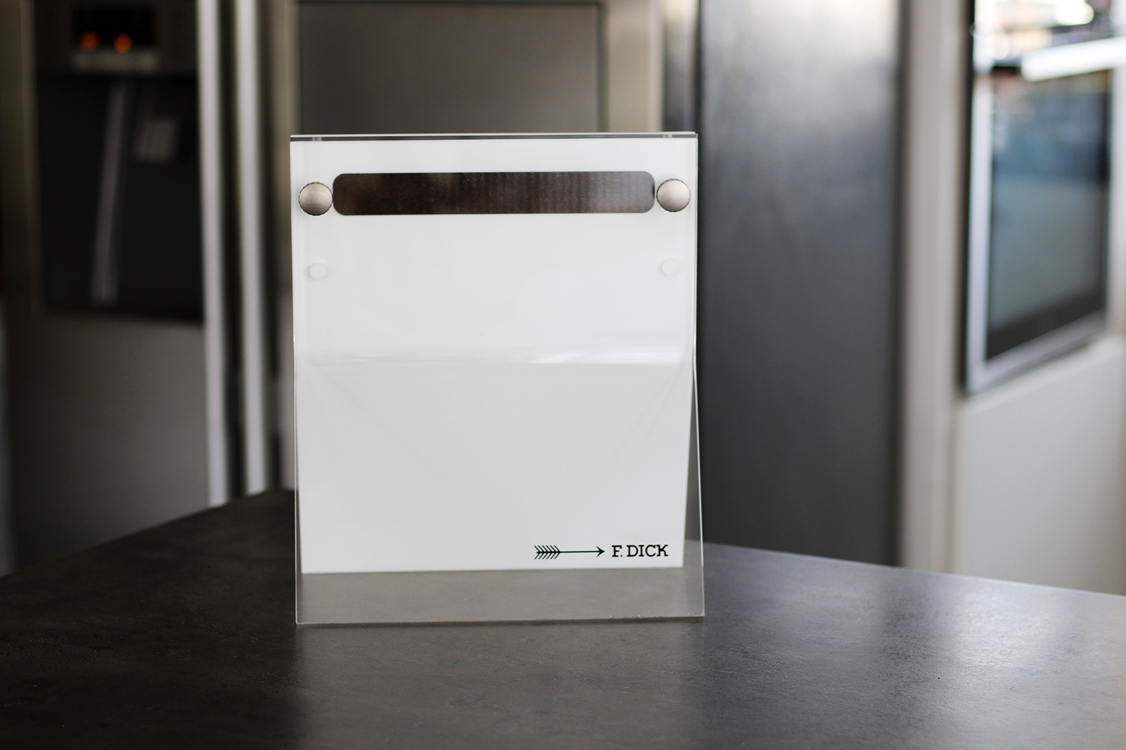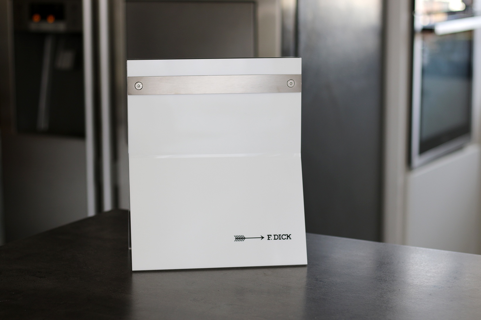 • Zadní bílá část má magnetickou lištu, na které nože drží, přední průhledná část plní především bezpečností úlohu, aby se při práci někdo o nože nezranil. Lze ji kdykoliv oddělit díky 2 šroubům.