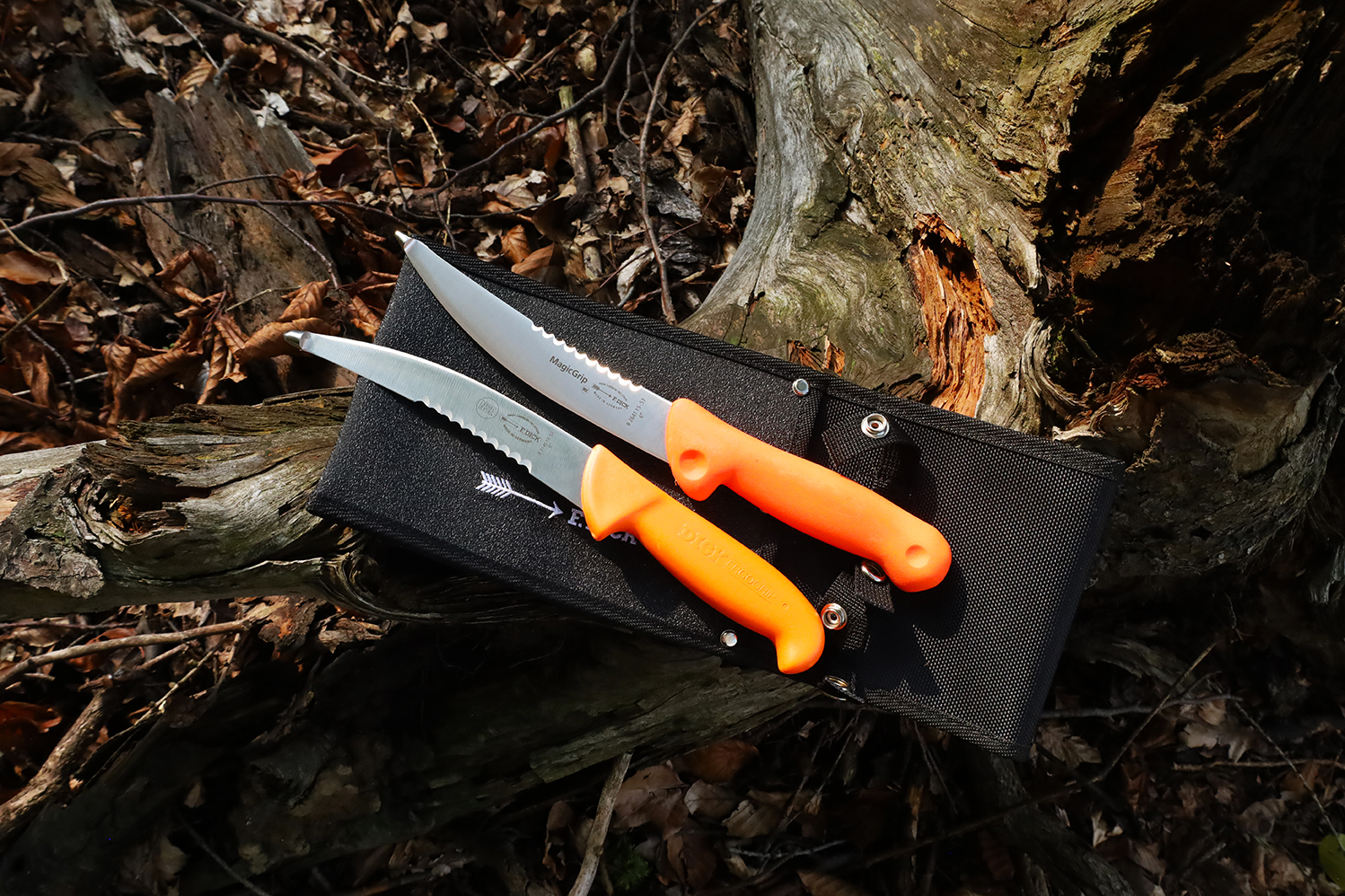 Hledáte tip na dárek pro myslivce? Pak klikněte na tuto 2dílnou sadu loveckých nožů MagicGrip s ergonomickou oranžovou rukojetí v omyvatelném pouzdru F. Dick. Najdete v ní nůž na vnitřnosti se zubatým ostřím v délce 15 cm a vykosťovací nůž s úzkou čepelí v délce 10 cm. Samostatně pak můžete koupit i pouzdro na 1 lovecký nůž, inspirujte se ZDE.