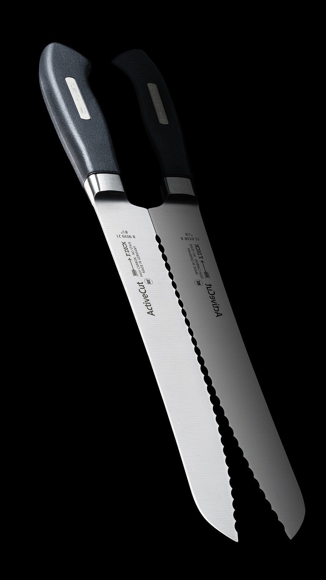Kované nože klasických tvarů ze série ActiveCut mají rukojeť z vysoce odolného plastu, která je s čepelí nože spojena bezespárově. Nože jsou dokonale vyváženy a pohodlně sedí v ruce. Poloviční patka umožňuje broušení po celé délce ostří.