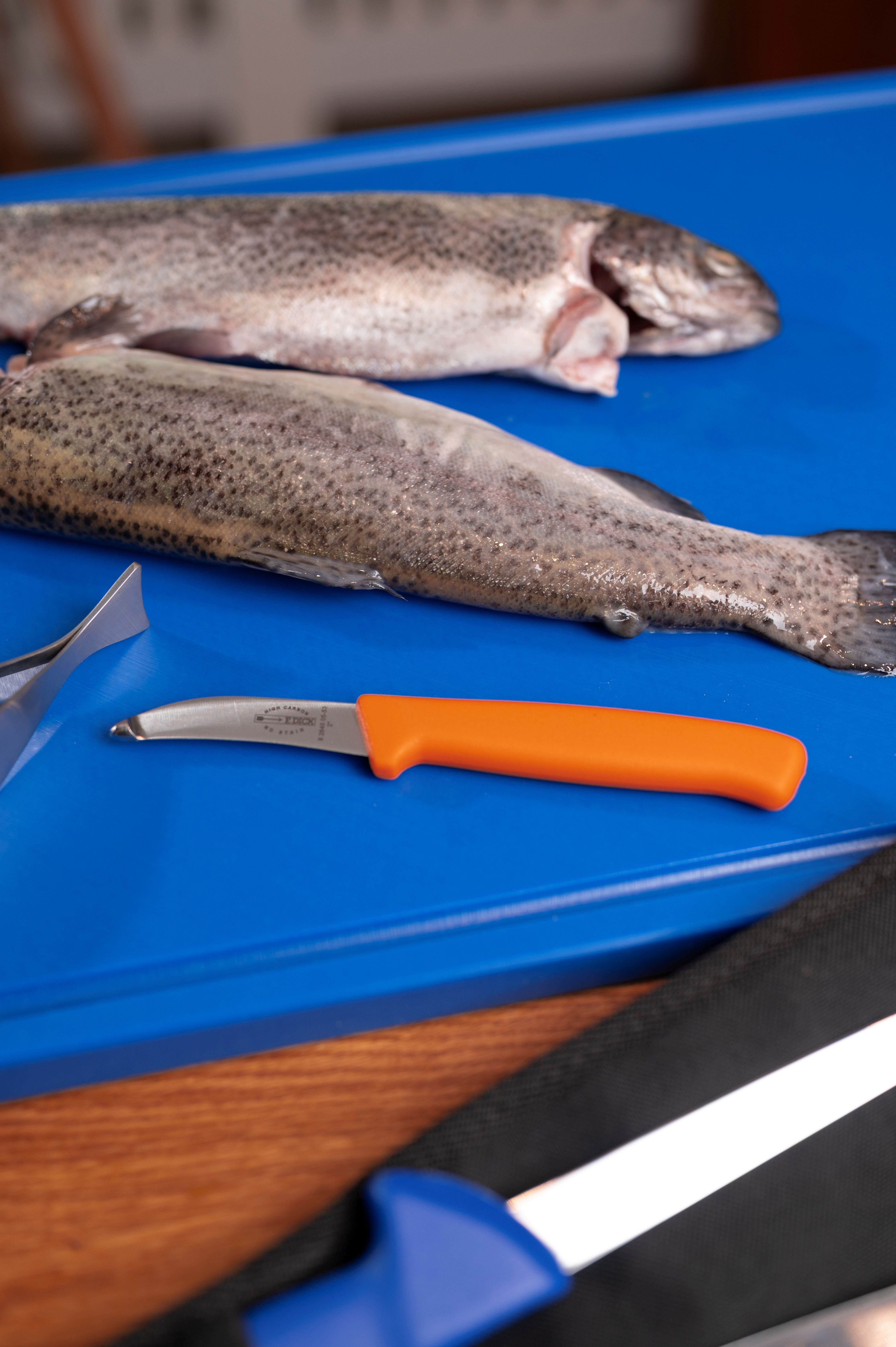 Specialní nůž pro rybáře k vykuchání a čištění ryb. Mírně zakřivená krátká a ostrá čepel umožnuje přesné řezy.