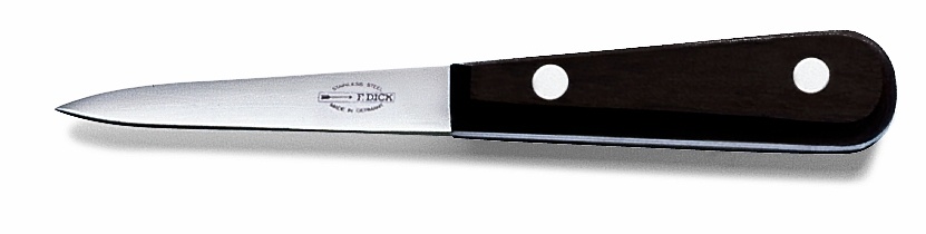 Nůž na ústřice v délce 7 cm bez záštity je určen k preciznímu otevírání ústřic na profesionální úrovni. Úzký tvar čepele bez záštity umožňuje citlivě a bez poškození ústřici otevřít po celém jejím obvodu. (Pokud chcete předejít zranění při otevírání ostrých schránek ústřic, využijte naší nabídky ochranných rukavic)