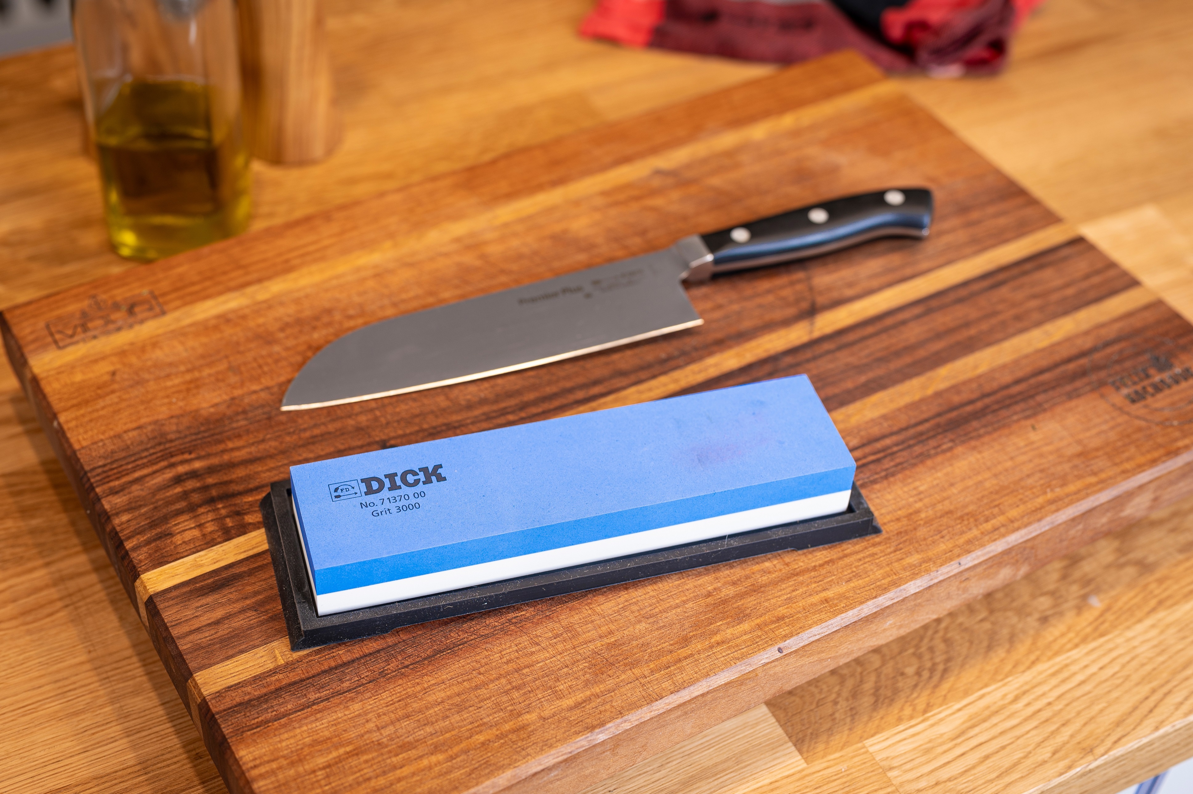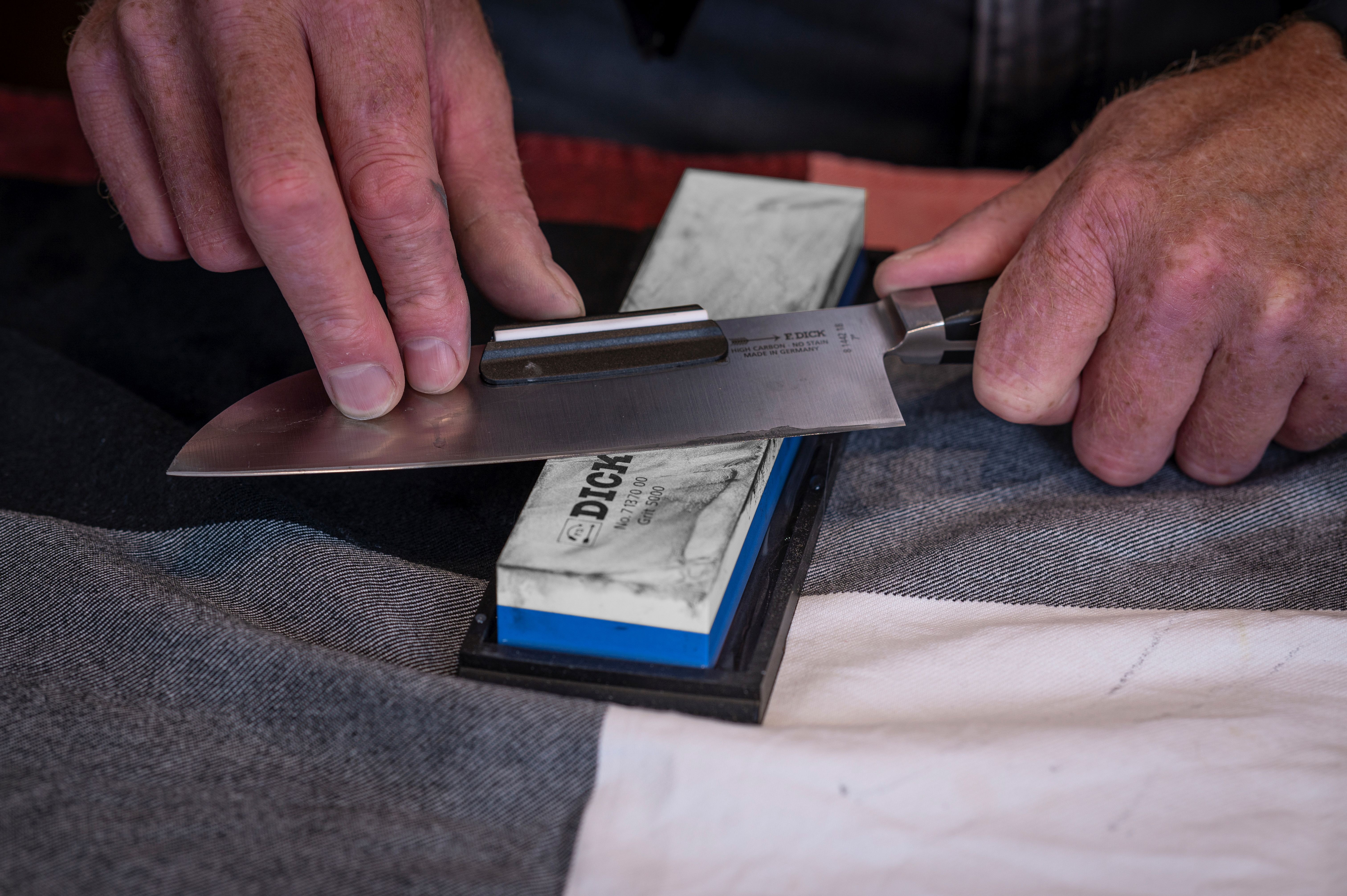 Optimální úhel ostření je 15°. Udržet tento úhel pomáhá protiskluzová podložka a vodítko pro snadné ostření.