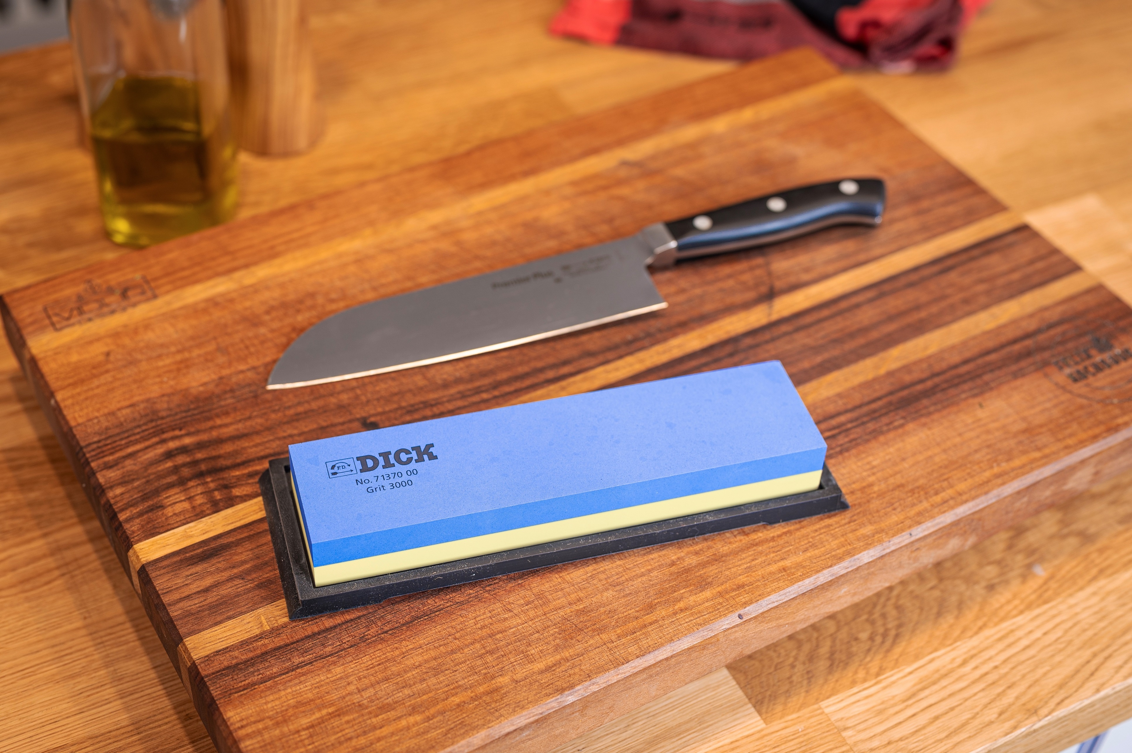 Optimální úhel ostření je 15°. Udržet tento úhel pomáhá protiskluzová podložka a vodítko pro snadné ostření.
