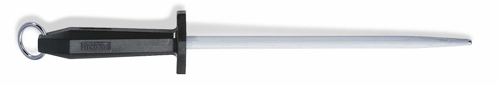 standardní tah, černou plastovou rukojeť se záštitou proti poranění při sklouznutí nože a závěsný kroužek.
