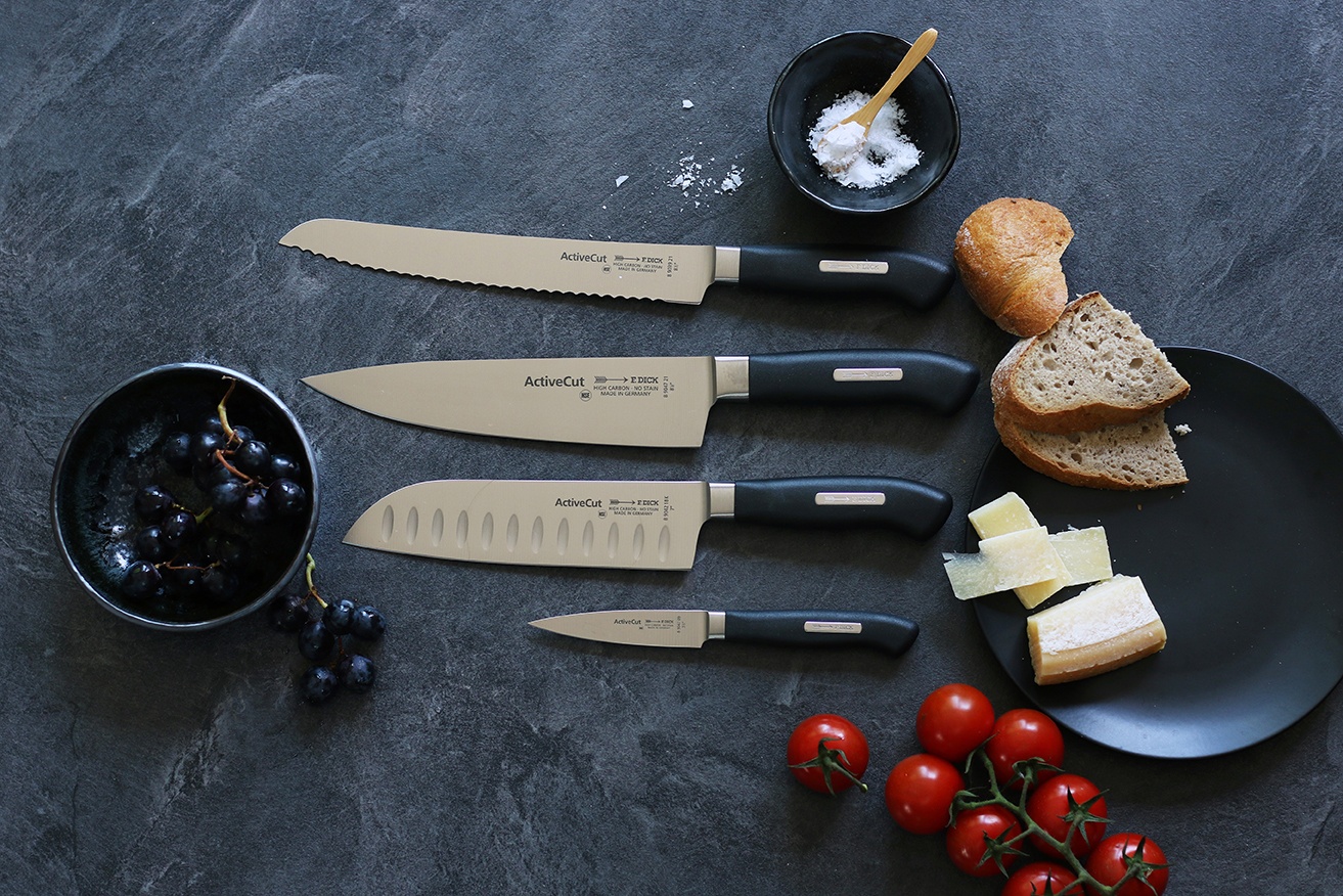Kované nože klasických tvarů ze série ActiveCut mají rukojeť z vysoce odolného plastu, která je s čepelí nože spojena bezespárově. Nože jsou dokonale vyváženy a pohodlně sedí v ruce. Poloviční patka umožňuje broušení po celé délce ostří.