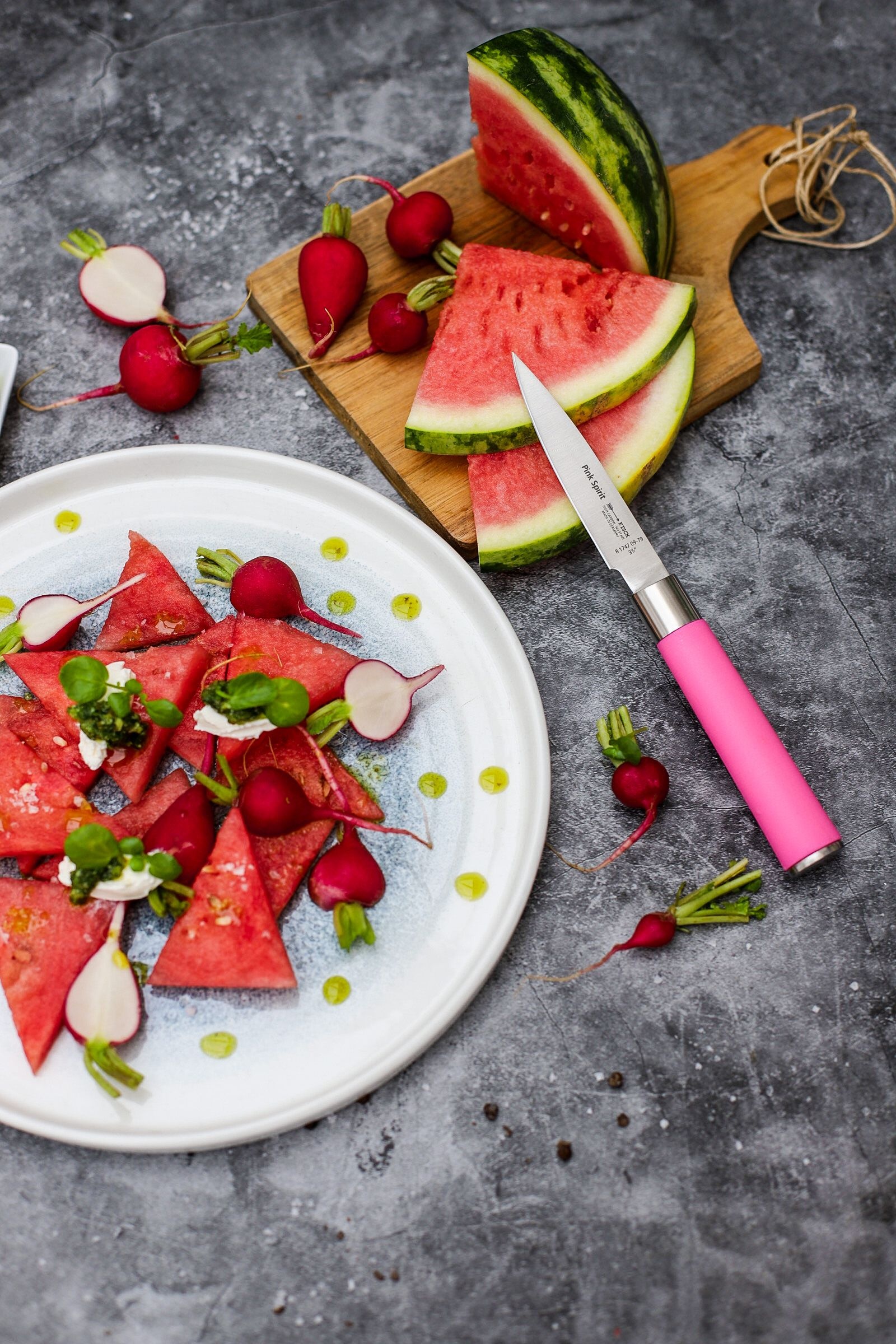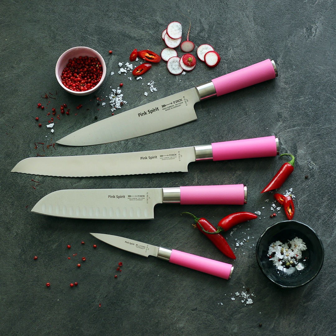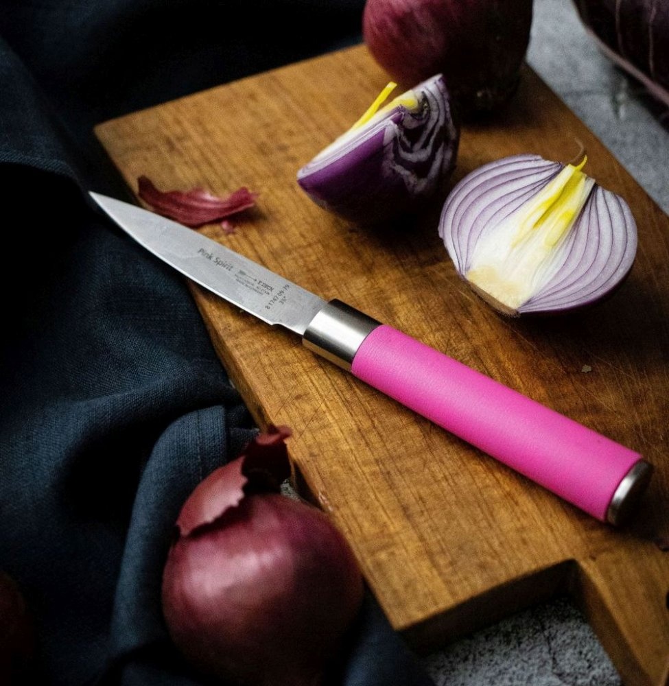 Limitovaná série Pink Spirit rozzáří vaši pracovní plochu! Dokonale ostré nože v růžovém provedení. Čepel každého kusu je velmi tence zabroušená a zaleštěná, aby byl řez maximálně přesný. Snadno s nimi ukrojíte pečivo, tvrdé zeleninové a ovocné slupky nebo pořádný steak. Série vychází z populární řady Red Spirit, která je též inspirovaná asijským typem nožů = typická kulatá rukojeť skvěle padne do ruky. Pink Spirit jsou určeny všem gastro nadšencům, hodí se do domácnosti nebo jako dárek.