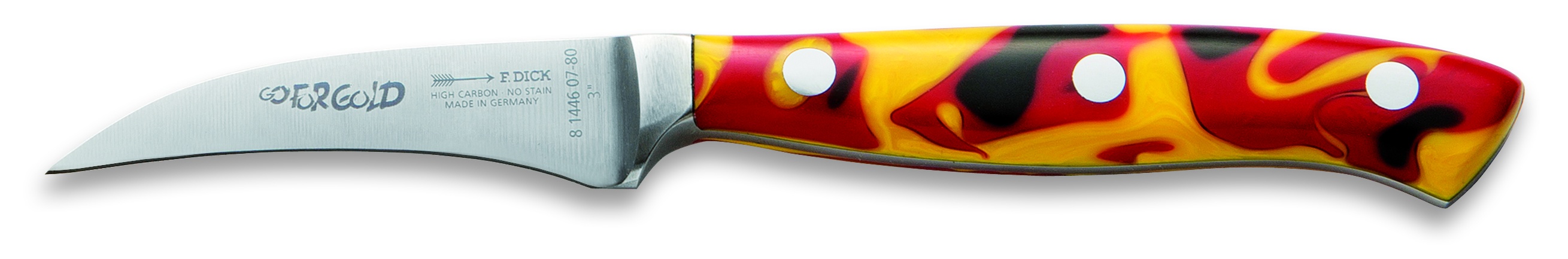 Go for Gold je nová edice nožů vytvořená ve spolupráci s Německým národním kulinářským týmem. Dokonale ostrá čepel a ergonomická rukojeť s unikátním designem, který nepřehlédnete. Série obsahuje všechny potřebné typy nožů pro profesionální i domácí vaření - na zeleninu, okrajování menších surovin i klasický kuchařský. Go for Gold a Německý národní kulinářský tým spojuje vášeň, cit pro dokonalost a kreativitu - zkrátka vše, co na své cestě za úspěchem kuchaři potřebují.