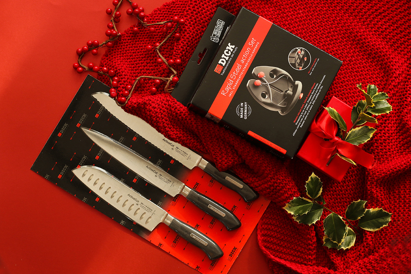 Vánoce se blíží! Až do 24. 12. pro vás máme nachystané v adventním kalendáři vybrané nože a sortiment F. Dick. Brzy se otevře okénko i s tímto dárkovým setem – ostřič Rapid Steel Action a 3dílná sada nožů Active Cut se slevou 30 %. A tím to zdaleka nekončí!