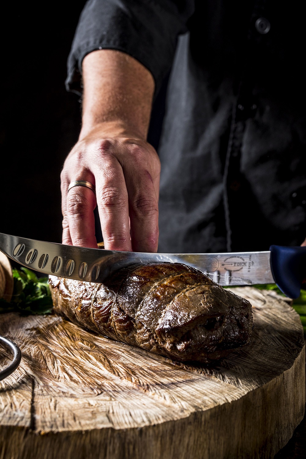 Nůž určený ke krájení větších kusů masa. Zahnutá čepel nože umožňuje dlouhý řezný pohyb. Je rovněž ideální například pro stahování kůže.