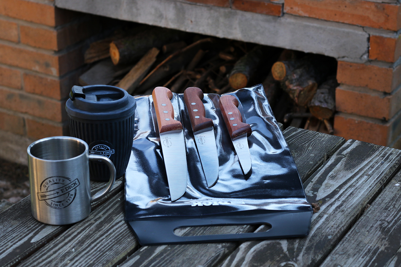 Buďte vždy vybaveni, ať už se vydáte na chalupu, chatu nebo do lesa. Vybrali jsme za vás nejvhodnější outdoor výbavu! Sadu nožů a zavírací nožíky s dřevěnou rukojetí. Nechybí ani hrnky F. Dick.