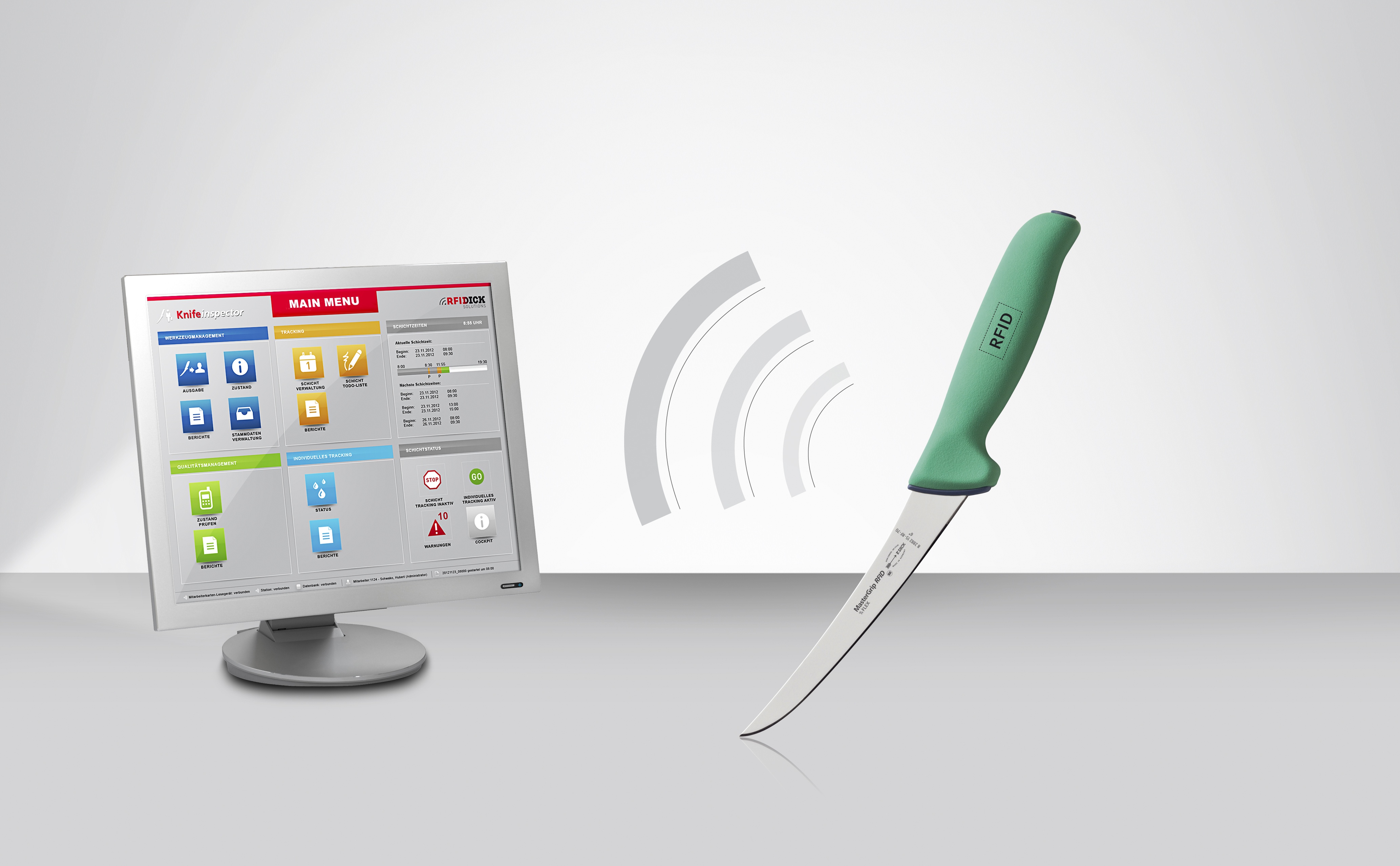 Součástí systému RFID je čtečka, která po načtení produktu zobrazí informace z čipu. Díky tomu lze nože a nástroje přiřadit ke konkrétnímu zaměstnanci nebo pracovní oblasti. RFID umožňuje také sledování skladových zásob - automaticky shromažďuje informace o všech nožích a nástrojích, jejich stavu a pohybu. Především pak minimalizuje rizika ztráty nožů a nástrojů. Pokud se nůž ztratí, například v provozu nebo při možné krádeži, snadno ho tak díky systému RFID najdete.