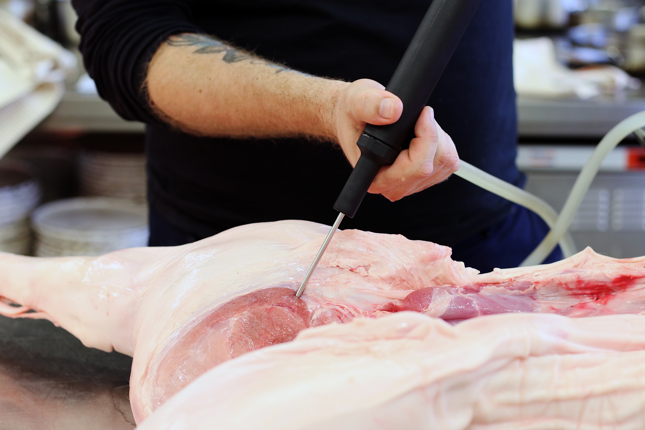 Nástroj pro nastřikování masa. Používá se na nastřikování masa slaným nebo ochuceným lákem. Po nastříknutí slaným lákem dochází k urychlení zpracování a také k lepšímu prosolení než při povrchovém lakování masa. Do láku kromě rychlosoli doporučujeme přidávat tekuté výtažky z koření. Nastříknuté maso poté grilujeme, udíme nebo rožníme.