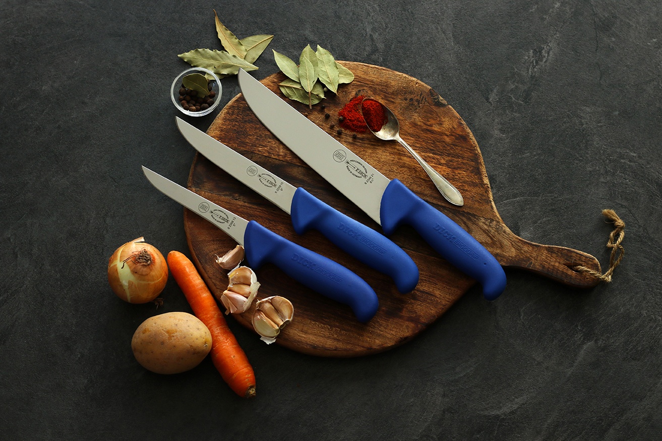 Nože ErgoGrip jsou absolutně hygienické řeznické nože vhodné pro profesionální použití. Špičková kvalita pro práci bez únavy – žádné kompromisy v ergonomii designu a ostrosti. ErgoGrip je série, která obsahuje správný nůž pro jakékoliv použití. Všechny nože série získaly US pečeť kvality NSF. Speciální výrobní proces eliminuje mezery mezi čepelí a nožem, tudíž na noži neulpívají žádné zbytky potravin.