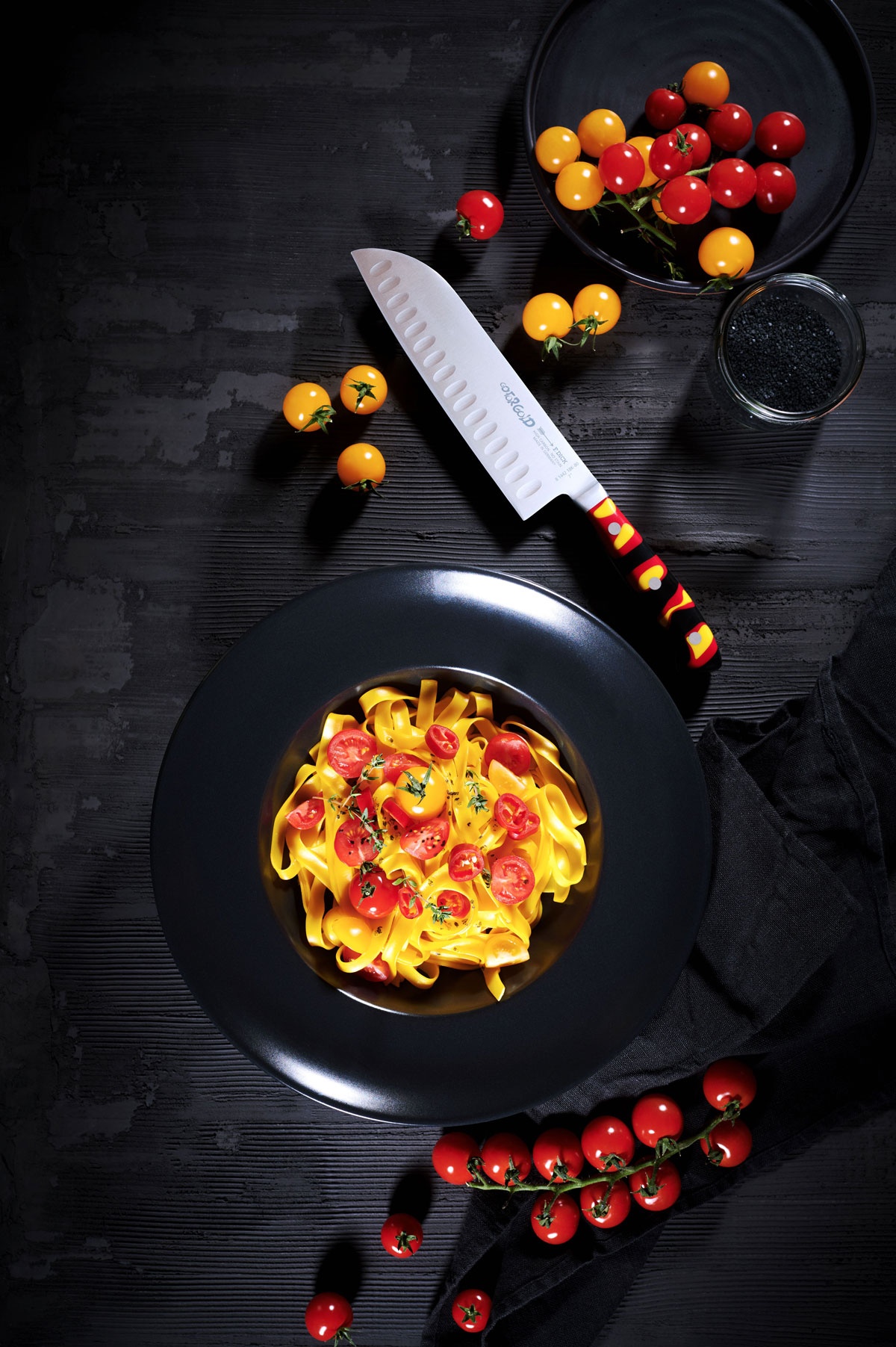 Go for Gold je nová edice nožů vytvořená ve spolupráci s Německým národním kulinářským týmem. Dokonale ostrá čepel a ergonomická rukojeť s unikátním designem, který nepřehlédnete. Série obsahuje všechny potřebné typy nožů pro profesionální i domácí vaření - na zeleninu, okrajování menších surovin i klasický kuchařský. Go for Gold a Německý národní kulinářský tým spojuje vášeň, cit pro dokonalost a kreativitu - zkrátka vše, co na své cestě za úspěchem kuchaři potřebují.