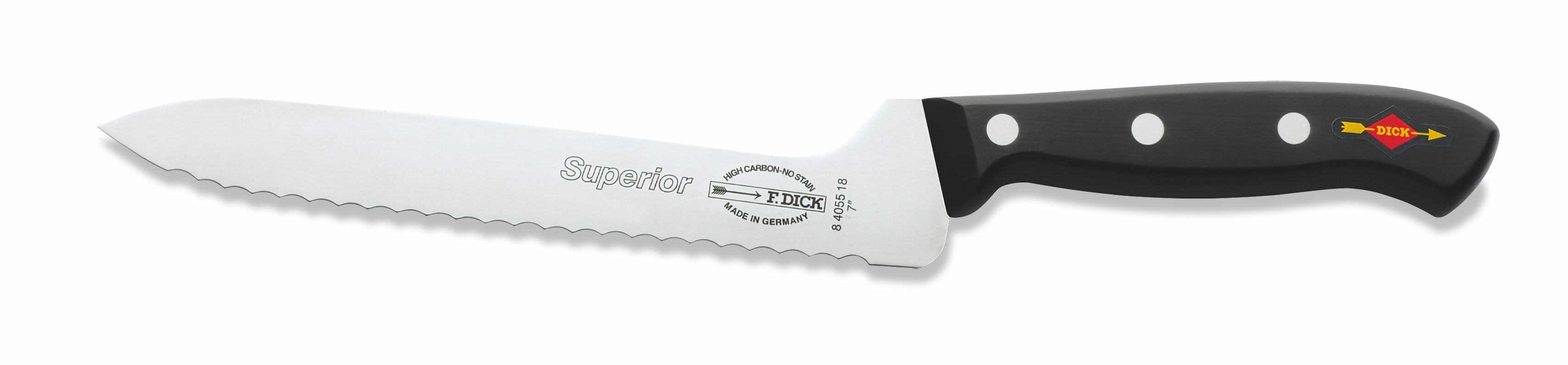 Tímto nožem snadno připravíte obložené chlebíčky a sendviče. Zalomená čepel usnadňuje rychlé, perfektní a rovné krájení chlebíčků baget.