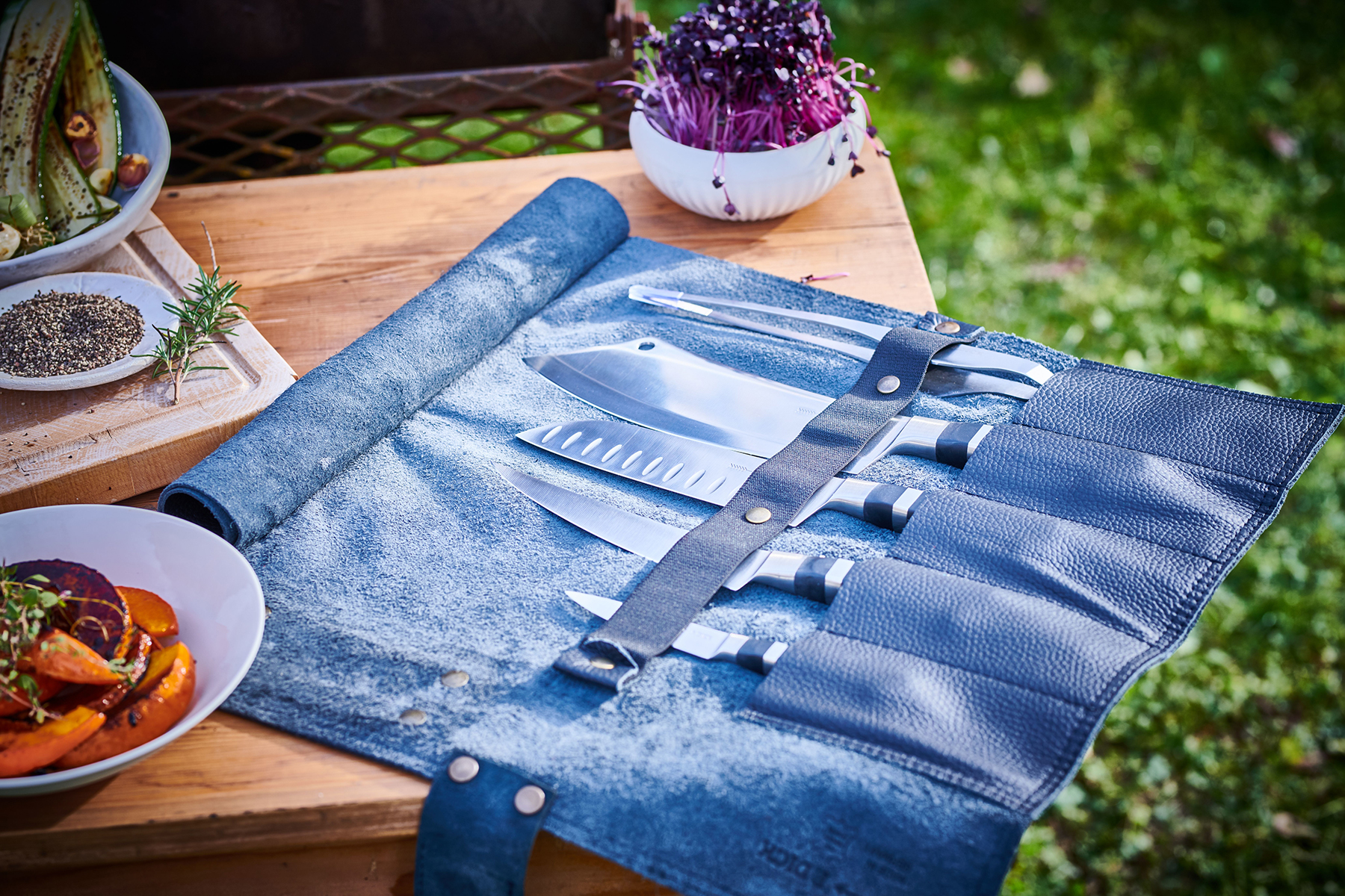 Co byste řekli na černou koženou grilovací zástěru a rolovací pouzdro F. Dick? Obojí je vyrobené z kvalitní kůže, která vydrží opravdu dlouho, stačí je jen zarolovat a vyrazit na cesty. Zástěra perfektně sedí na tělo, má nastavitelné řemínky a zapínání na přezku. Rolovací pouzdro má 5 kapes a speciální řemínek s přezkou.