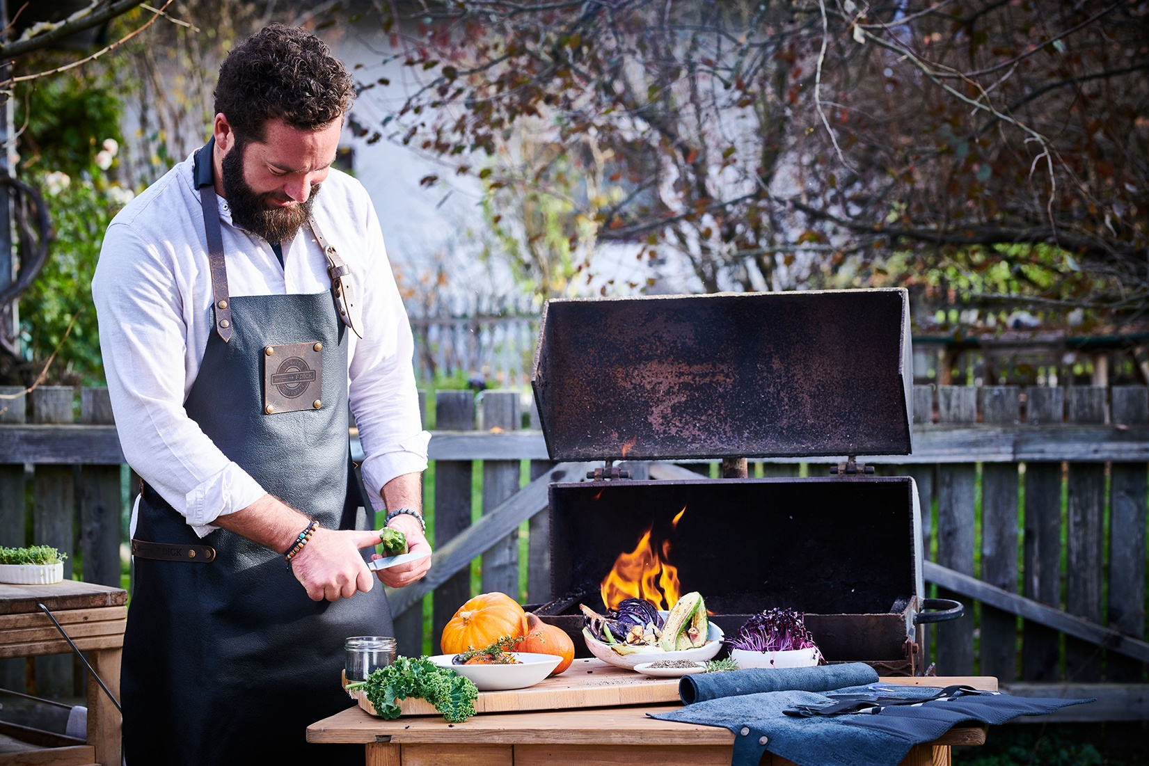 Co byste řekli na novou výbavu (nejen) ke grilu? Jak by se vám líbila černá kožená zástěra? A co teprve kožené rolovací pouzdro plné nožů Friedr. Dick? Připravte se na začátek outdoorové sezony už nyní.