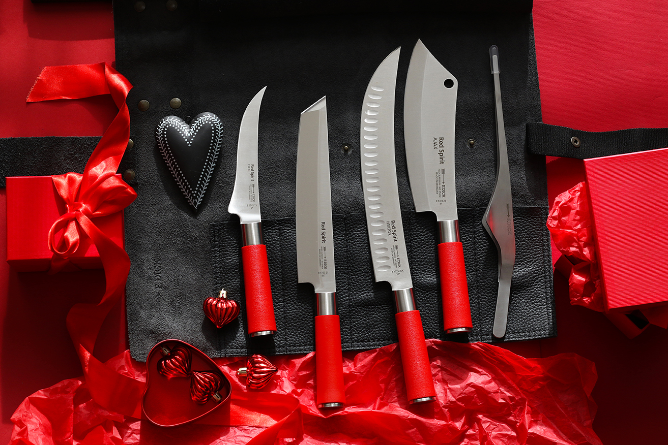 Pro opravdové milovnice outdoor vaření, grilování, pro profi kuchařky i gastro fanynky tu máme něco speciálního. Černé kožené rolovací pouzdro F. Dick. V něm najdete nože AJAX, Hektor, Tanto a vykosťovací nůž ze série Red Spirit, a pinzetu. Toto luxusní pouzdro můžete koupit samostatně i s příslušenstvím z jiných sérií, jako například s noži 1905 nebo VIVUM.